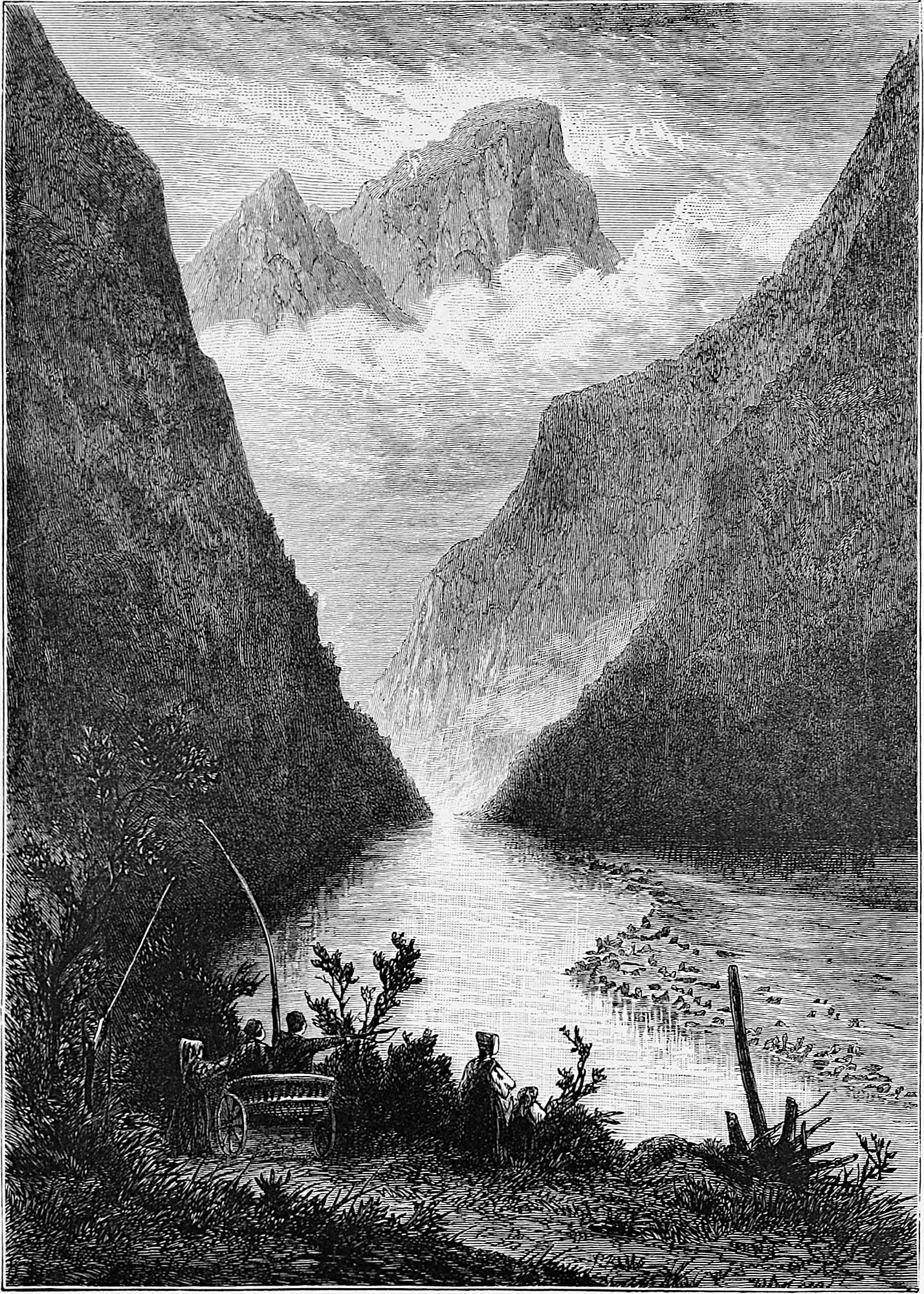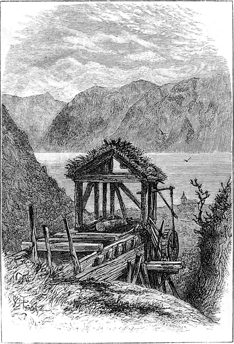 How different is it now! Thanks to Messrs. Wilson, steamers take us thither almost to the hour, unless, indeed, the clerk of the weather should connive with old Neptune to teach us a lesson, by reminding us that the elements are not yet to be ordered about entirely as we like. English visitors commenced about 1824; Lord Lothian, Lord Clanwilliam, and Lord H. Kerr, 1827; Marquis of Hastings, 1829; and in 1830 we have Elliott’s account of Norway. Those were early days, when the bönder were astonished, and could hardly believe their own eyes, when Englishmen went down with a piece of thread and a kind of coach-whip to kill a salmon of thirty pounds; or, again, when the first flying shot opened a new world to them. Those were the times when members of the Storthing (or Parliament) appeared in the costume of their own district, with belts, tolle-knives, &c. They were not so eager to grasp at civilisation as the Japanese, who simultaneously took to elastic boots, tall black hats, and the English language within a year. No; they are a contented people, with no desire for change, or to have it thrust upon them, until they discover that they can make money of the delighted foreigner, who, elevated by the grandeur of the mountain scenery, grows more warm-hearted, kind, and generous than ever. Then the Norseman becomes rabid and exacting; but the provinces (thank Heaven!) still preserve their primitive simplicity.