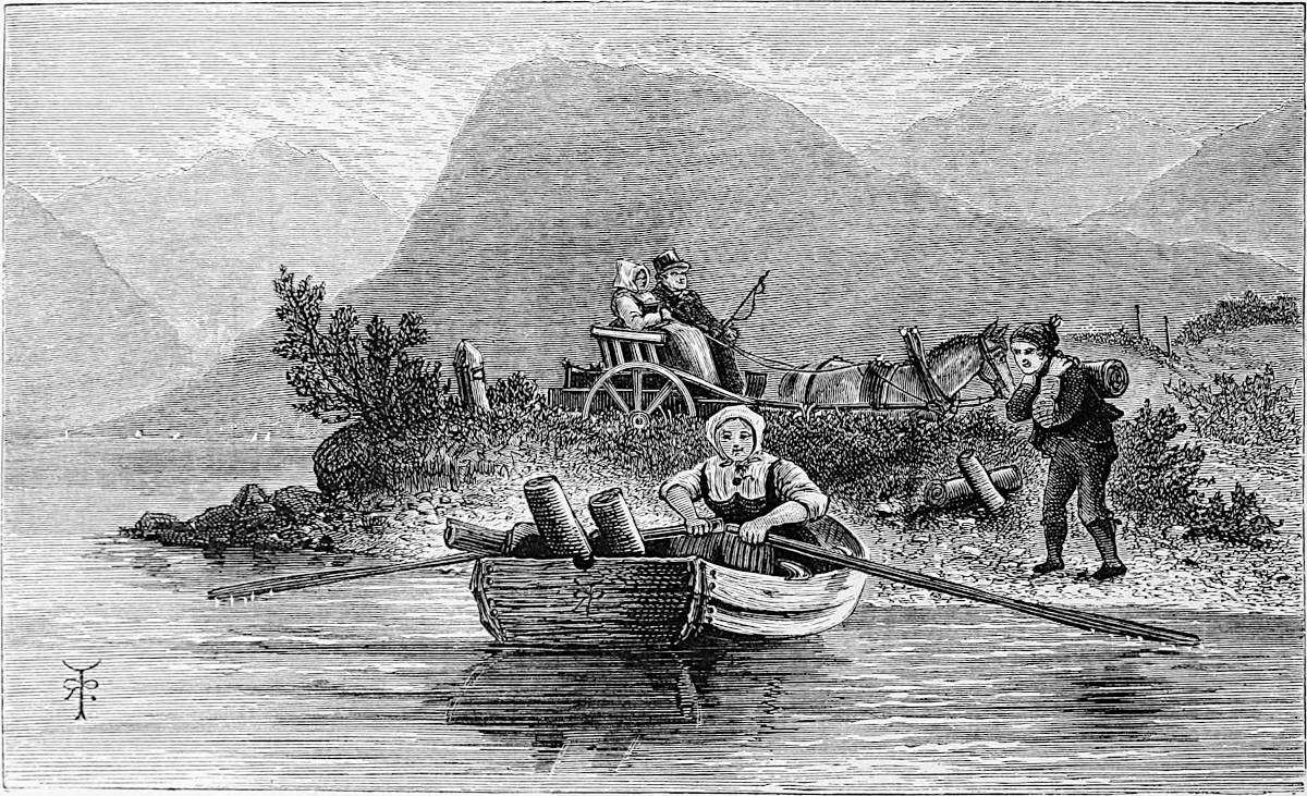 This done, we started on our run to Christiania, with comparatively smooth water, a lovely evening, a prolonged crepusculum, and, late in the evening, a sweet little French song, sung with the most delightful simplicity by a lady. “Petites Fleurs des Bois” is indelibly impressed on the mind of the Patriarch. When it afterwards became known that we were indebted to an English bride for such a treat—which it really was—the bachelors whispered “A happy bond of union!” but considered, at the same time, that Norwegian travelling was scarcely made on purpose for honeymooning. Take carrioles, for instance, or the jolting stolkjærre, in which the bride might sometimes find herself unceremoniously thrown into the lap of the bridegroom, or vice versâ. No; unless the lady is familiar with the manners, customs, and petty inconveniences attendant on travelling in Norway, that country will not prove the happy hunting-ground for honeymoons.