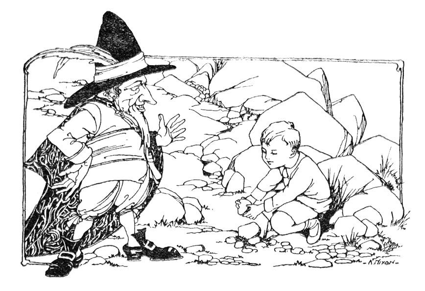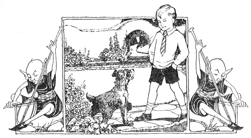 George and Alexander set out in search of adventure. The dream-music calls to him again. Can dogs talk? "Wish as hard as ever you can!" Just like a bit of a story-book! The little green gate. The delightful little house in the wood, and the tea waiting there for George and Alexander. The Land of Dreams.
