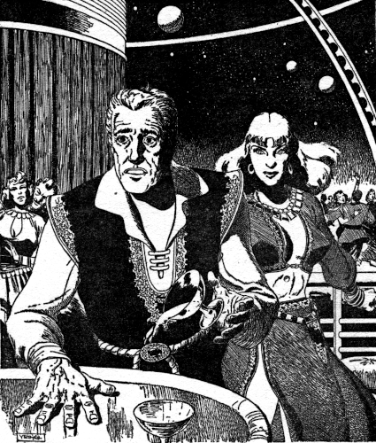 "I could not help hearing your last question, Mr. Condemeign," the Doctor said. "And I can assure you that Miss Froon answered correctly. We do not accept neurotics or certifiable psychotics on Nepenthe." Doctor Munro's eyes fixed Condemeign's with a stare of almost unbearable morality. "We are not Torquemadas, sir, nor Satanists, pandering to the perverted tastes of common debauchees. You will find no connoisseurs of pain and anxiety among our—ah—staff, though if one is ever required, I am sure that I myself could pass muster...." Doctor Munro's eyes sharpened suddenly and a long purl of smoke went raging past his lips. "Though, of course," he said hurriedly, "the occasion has arisen only twice before. Both times in the case of an extremely clever penetration of our screening system by agents of Bios. They regretted it, of course, rather screamingly, as I remember."