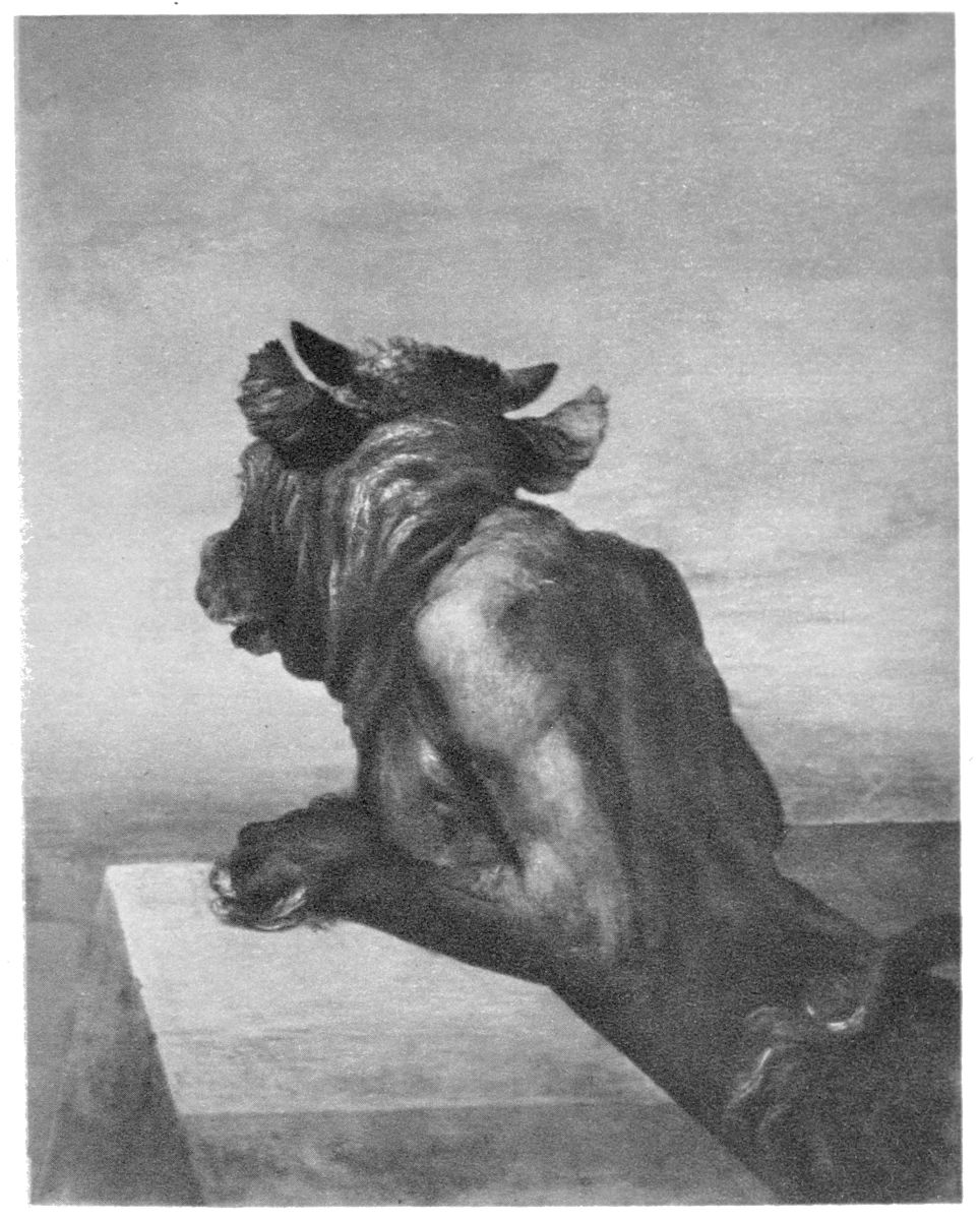 This general characteristic might of course be easily traced in all the portraits one by one. If space permitted, indeed, such a process might be profitable; for while we take careful note of all the human triviality of faces, the one thing that we all tend to forget is that divine and common thing which Watts celebrates. It is the misfortune of the nonreligious ages that they tend to cultivate a sense of individuality, not only at the expense of religion, but at the expense of humanity itself. For the modern portrait-painter not only does not see the image of God in his sitters, he does not even see the image of man. His object is not to insist on the glorious and solemn heritage which is common to Sir William Harcourt and Mr. Albert Chevalier, to Count Tolstoy and Mr. Wanklyn, that is the glorious and solemn heritage of a nose and two eyes and a mouth. The{70} effort of the dashing modern is rather to make each of these features individual almost to the point of being incredible: it is his desire to paint the mouth whose grimace is inimitable, the eyes that could be only in one head, and the nose that never was on sea or land. There is value in this purely personal treatment, but something in it so constantly lost: the quality of the common humanity. The new art gallery is too like a museum of freaks, it is too wild and wonderful, like a realistic novel. Watts errs undoubtedly on the other side. He makes all his portraits too classical. It may seem like a paradox to say that he makes them too human; but humanity is a classis and therefore classical. He recurs too much to the correct type which includes all men. He has, for instance, a worship of great men so complete that it makes him tend in the direction of painting them all alike. There may be too much of Browning in his Tennyson, too much of Tennyson in his Browning. There is certainly a touch of Manning in his John Stuart Mill, and a touch of the Minotaur in many of his portraits of Imperial politicians. While he celebrates the individual with a peculiar insight, it is nevertheless always referred to a general human type. We feel when we look at even the most extraordinary of Watts’ portraits, as, for instance, the portrait of Lord Stratford de Redcliffe, that before Lord Stratford de Redcliffe was born, and apart from that fact, there was such a thing as a human being. When we look at a brilliant modern canvas like that of Mr. Sargent’s portrait of Wertheimer, we do not feel that any human being analogous to him had of necessity existed. We feel that Mr. Wertheimer might have been created before the stars. Watts has a tendency to resume his characters into his background as if they were half returning