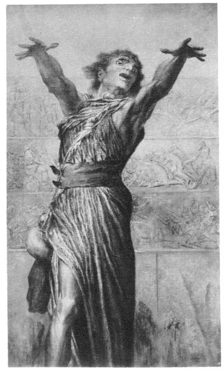 Lastly, it would be quite impossible to complete this prefatory suggestion of the atmosphere in which the mind of Watts grew and prevailed, without saying something about that weary and weather-beaten question of the relation of art to ethics on which so much has been said in connexion with him and his contemporaries. About the real aim and the real value of Watts’ allegorical pictures I shall speak later, but for the moment it is only desirable to point out what the early and middle Victorian view of{16} the matter really was. According to the later æsthetic creed which Mr. Whistler and others did so much to preach, the state of the arts under the reign of that Victorian view was a chaos of everyone minding everyone else’s business. It was a world in which painters were trying to be novelists, and novelists trying to be historians, and musicians doing the work of schoolmasters, and sculptors doing the work of curates. That is a view which has some truth in it, both as a description of the actual state of things and as involving an interesting and suggestive philosophy of the arts. But a good deal of harm may be done by ceaselessly repeating to ourselves even a true and fascinating fashionable theory, and a great deal of good by endeavouring to realize the real truth about an older one. The thing from which England suffers just now more than from any other evil is not the assertion of falsehoods, but the endless and irrepressible repetition of half-truths. There is another side to every historic situation, and that often a startling one; and the other side of the Victorian view of art, now so out of mode, is too little considered. The salient and essential characteristic of Watts and men of his school was that they regarded life as a whole. They had in their heads, as it were, a synthetic philosophy which put everything into a certain relation with God and the wheel of things. Thus, psychologically speaking, they were incapable not merely of holding such an opinion, but actually of thinking such a thought as that of art for art’s sake; it was to them like talking about voting for voting’s sake, or amputating for amputating’s sake. To them as to the ancient Jews the Spirit of the unity of existence declared in thunder that they should not make any graven image, or have any gods but Him. Doubtless, they did not give art a