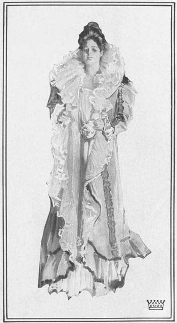 The general room was crowded with women—women in the fashions of the day preparing for the fashions of the morrow; girls—the pretty, graceful, polite dressmakers’ assistants famed in Parisian song and story—persuading, soothing, cajoling, flattering. There were a few men,[16] all of them fitters except two. The exceptions were Grafton, trying to efface himself, and Paquin, trying to escape. He had come forth at the request of a customer important enough to be worthy of personal attention, but not important enough to be admitted to the honor of his private consultation-room. The women had seized him and, regardless of his bored and absent expression and speech, were swarming about him, impeding his retreat.