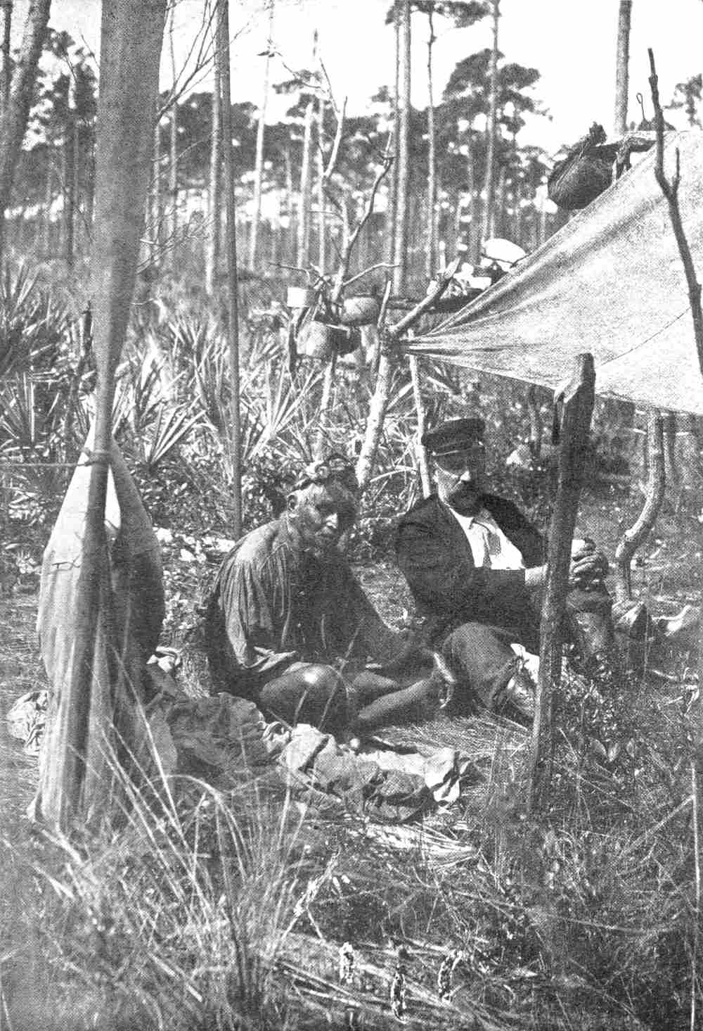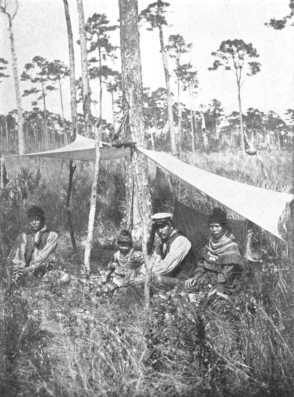 When most of the Seminoles were moved from Florida to Indian Territory, a few score of them were unwilling to go. Of these who remained, the descendants, ten years ago, numbered about six hundred. An effort was made at that time to buy for this band the land on which they lived and a few hundred dollars was given for that purpose.