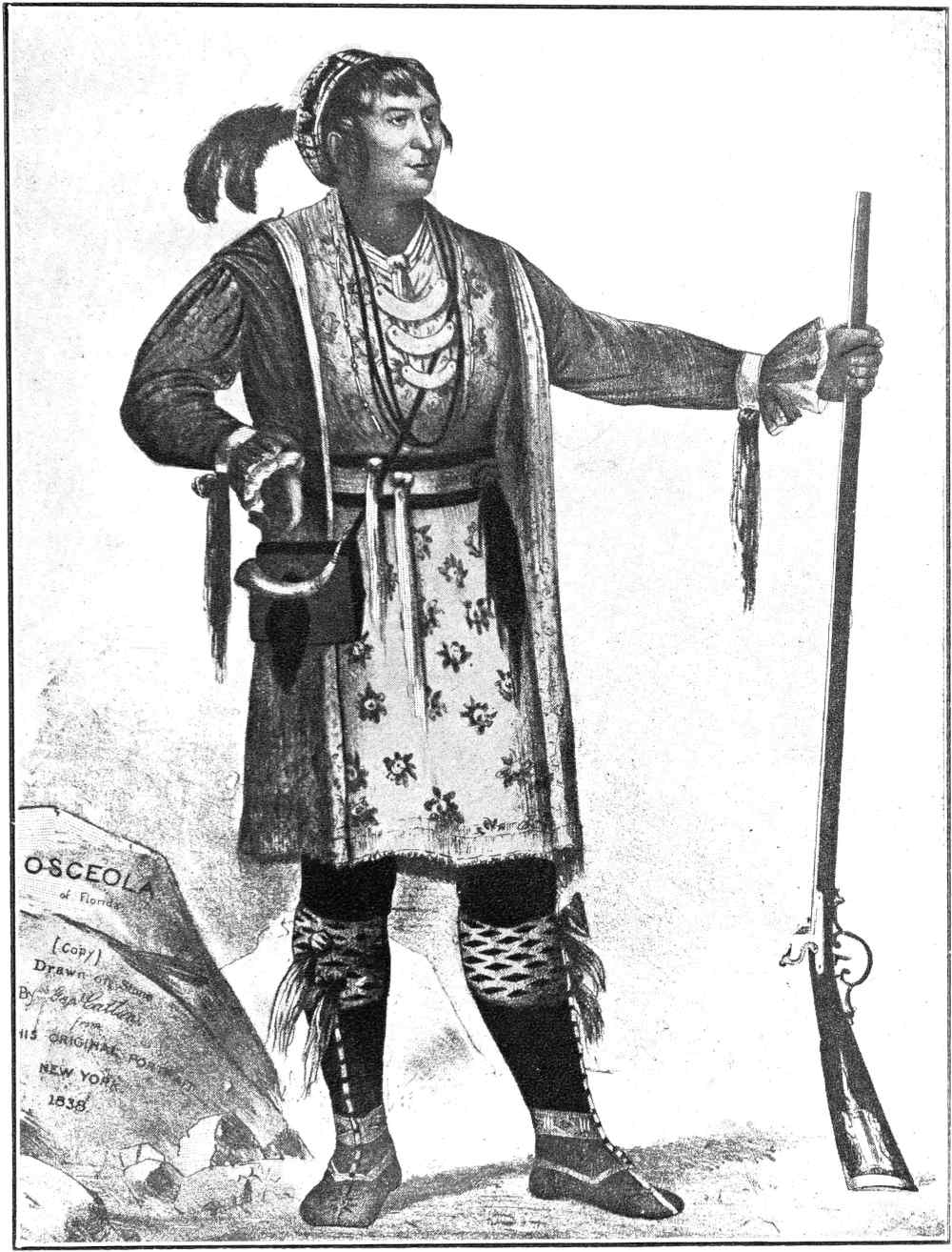 [1] Catlin and others give “the black drink” as the signification of Osceola, or Asseola, from the man’s capacity for that drink. Asseola was doubtless the original and true name. But “Asse” or “hasse,” in the present Seminole tongue, means “the sun.” This, with the affix “ola,” or “he-ho-lar,” would mean “the rising sun” rather than “the black drink.”