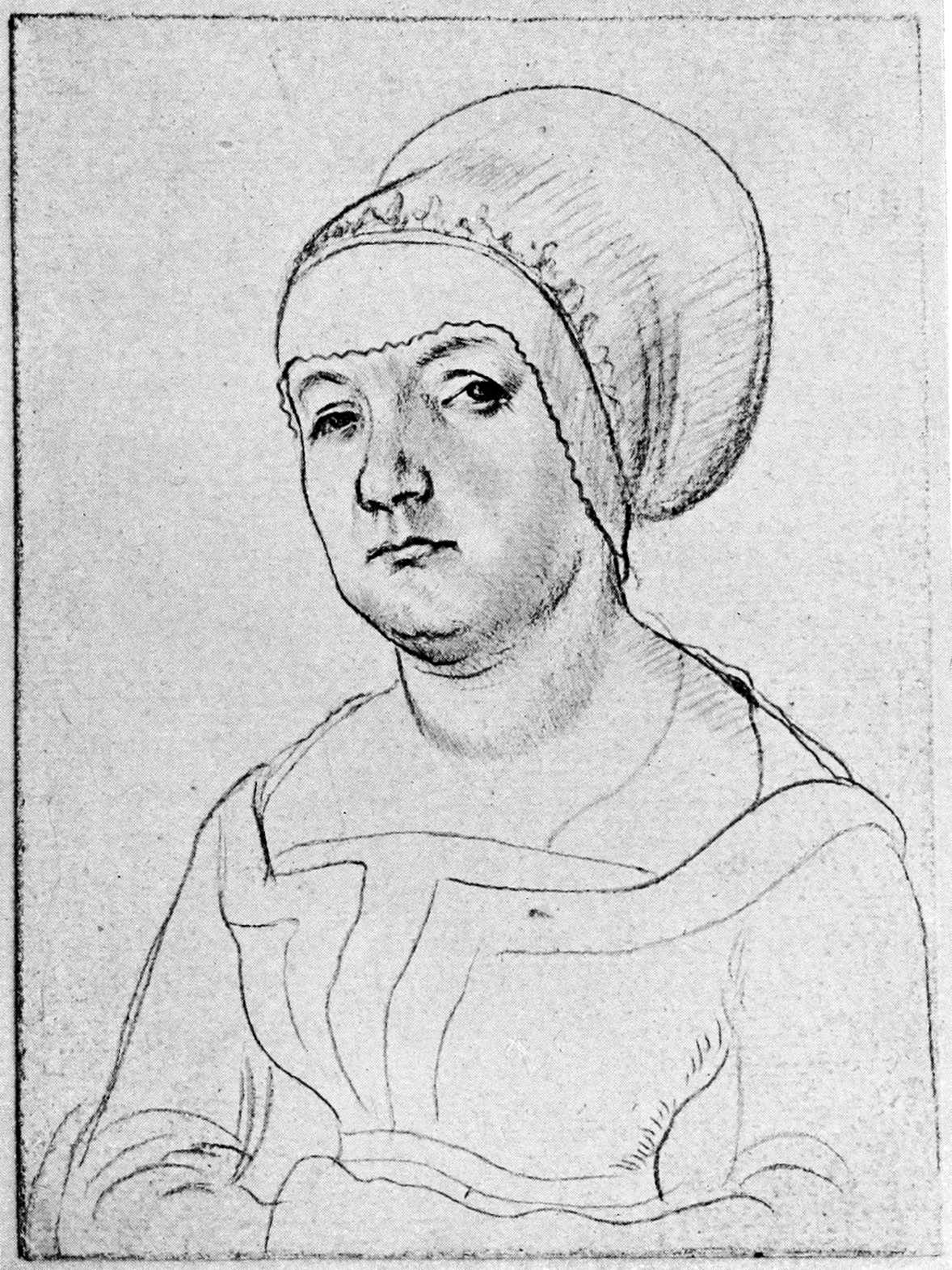 757. Hampton Court, 610 (325). Woltmann, 162. Reproduced by Ernest Law, Holbein’s Pictures, &c., Pl. ix.; Davies, p. 184; Cat. Tudor Exhib., 1890, No. 72, p. 32; Ganz, Holbein, p. 113.