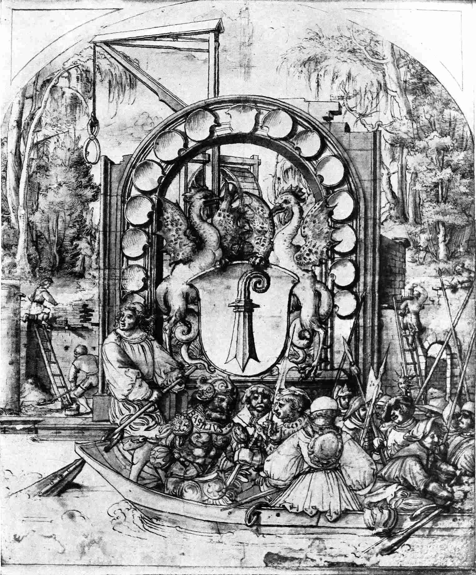 | Design for painted glass. By Ambrosius Holbein. | ||