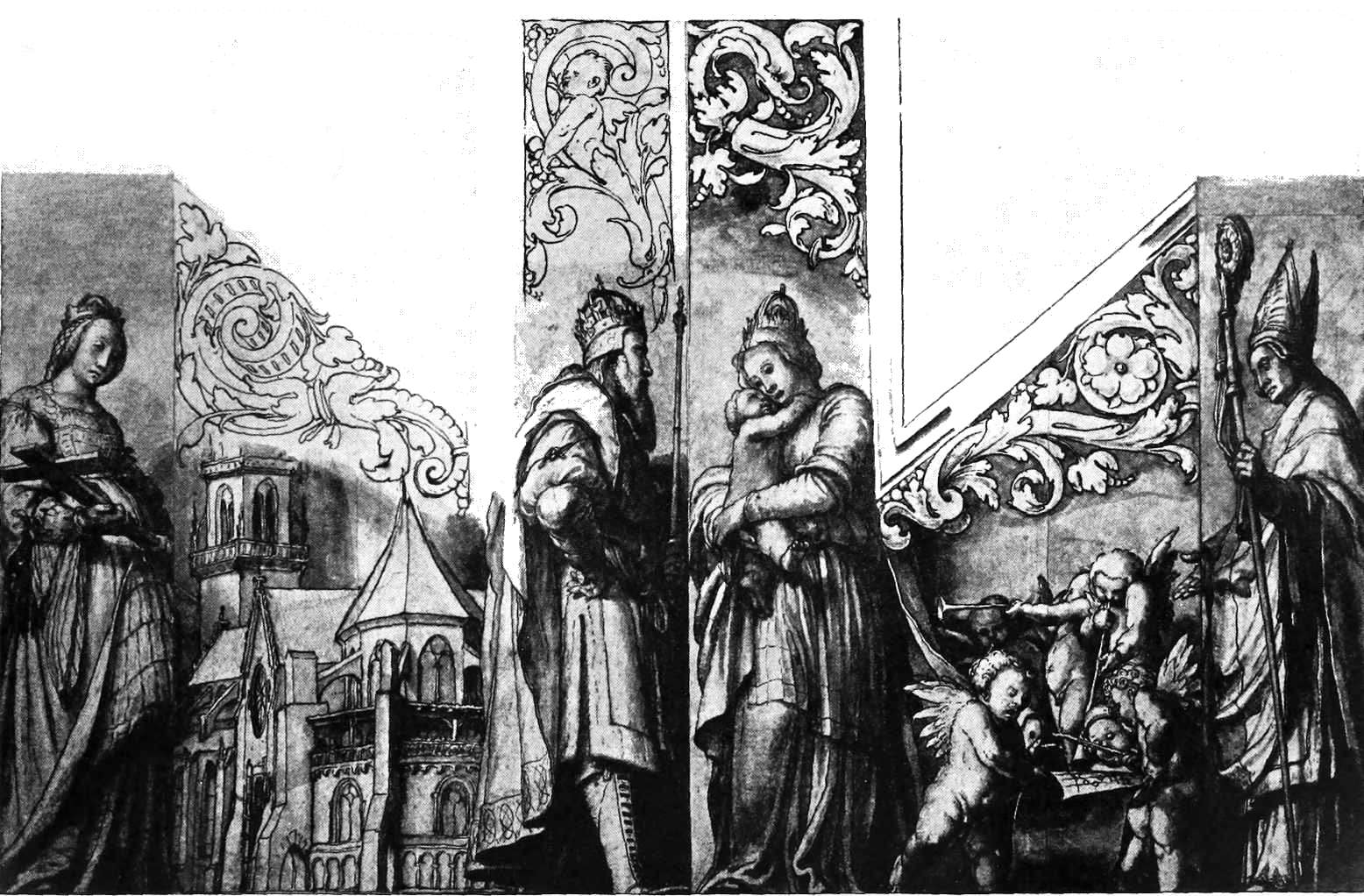 | Left-hand panel of the “Basilica of St. Paul” altar-piece. By Hans Holbein the Elder. | ||
