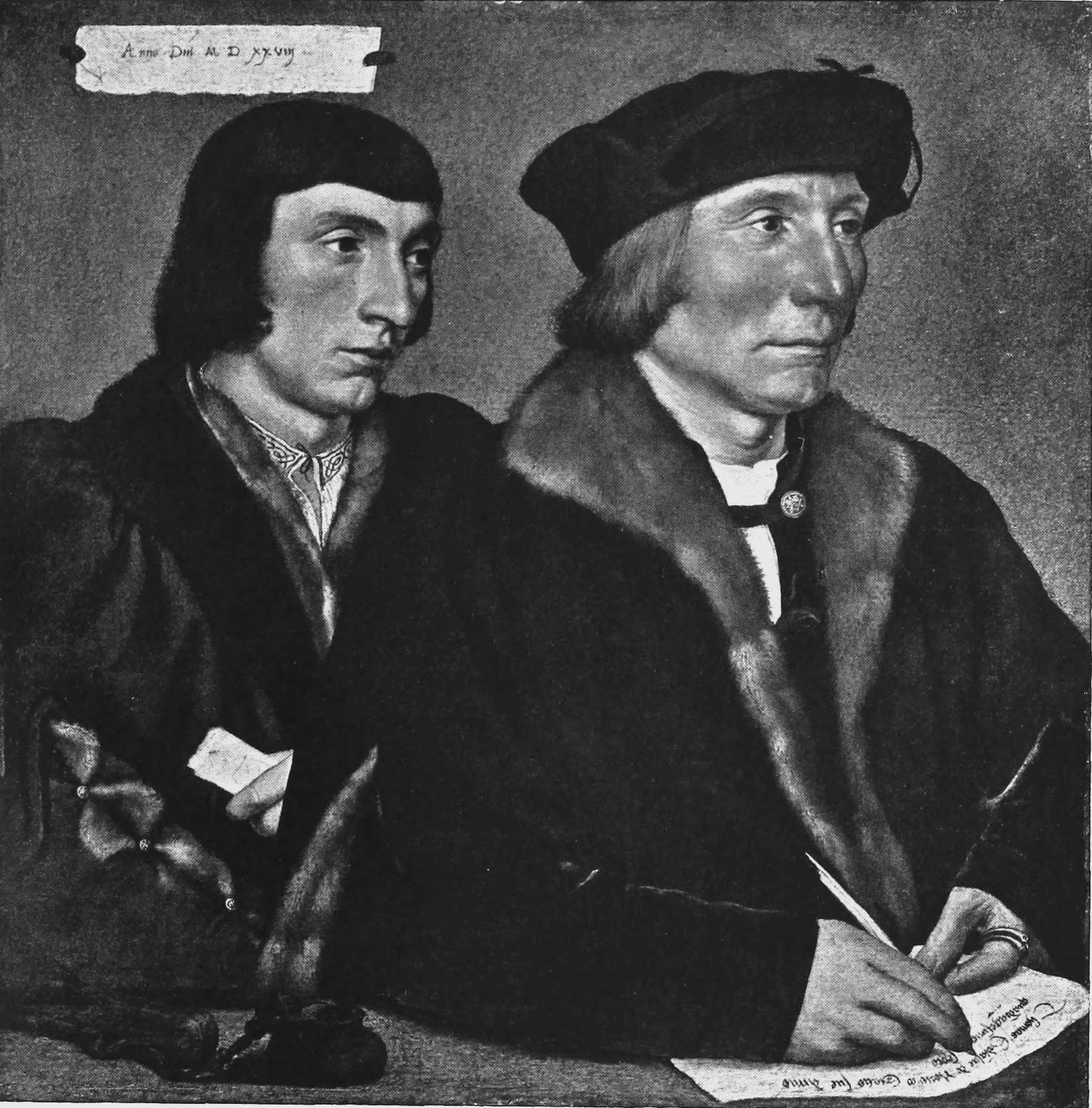 731. It was at one time in the Arundel Collection, and is entered in the 1655 inventory as “2 Ritratti in un quadro col nome de Thomas Godsalve.” It was purchased for Dresden in Paris in 1749.