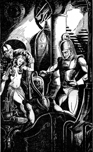 Even in the mines—in the serfdom of Tetrarch—her beauty caught him. This was the girl who would always make him uncomfortable ... as it had back in the old days—when Earth was free. She had gone on the stage. He had buried himself in a science laboratory. They had lost touch. When the tetrarchs overran Earth he had lost all knowledge of her. Besides, he had been busy ... busy on the most important project of Earth’s Thirtieth Century A.D.