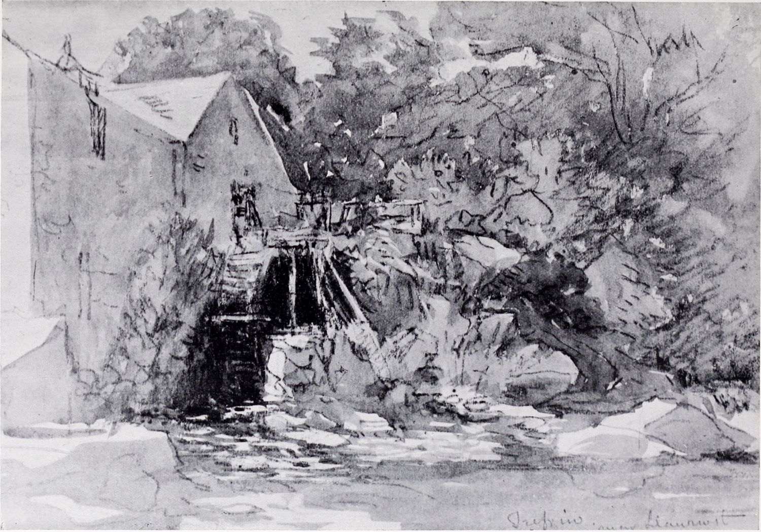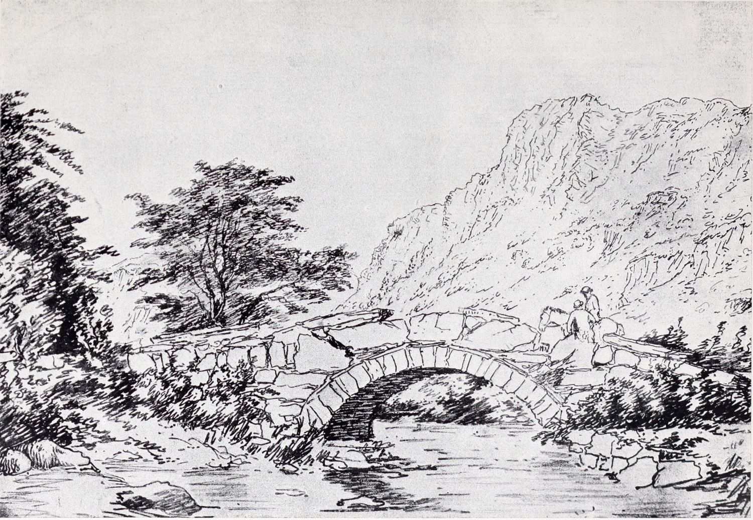Even now, however, we have not come to the end of Cox’s multifarious activities during this period. Besides being an amateur agitator and gardener, a prolific artist in water colour, and an overworked teacher, he seems to have turned author as well. In 1814 he published an educational work on landscape art, called: “A Treatise on Landscape Painting and Effect in Water-Colours, from the first Rudiments to the finished Picture, with Examples in Outline Effect and Colouring.” This was illustrated by a number of soft-ground etchings. It was followed, in 1816, by “Progressive Lessons in Landscape for Young Beginners,” a series of twenty-four soft-ground etchings without letterpress; and in 1825, his “Young Artist’s Companion, or Drawing-Book of Studies,” appeared. It was perhaps as a preliminary study for one of the illustrations to these volumes that the pen and ink drawing reproduced in Plate XIV. was made. At any rate the interest of these publications depends rather upon the illustrations than upon the letterpress, many of the etchings containing the first ideas of subjects which later had great success as water-colours; the etchings of Changing Pasture and Going to the Mill, for example, furnished the subjects of some of Cox’s latest paintings. It has also been rumoured that Cox was not entirely responsible for the letterpress, being indebted for assistance in its composition to some unknown “clergyman.” However this may be, it is pretty certain that the opinions must have been those which Cox himself held. And as the opinions of a great artist as to the aim and scope of his own art are always of interest it may be{14} advisable to quote a passage or two from these books, even though some other hand may have corrected the artist’s grammar and inflated his periods.