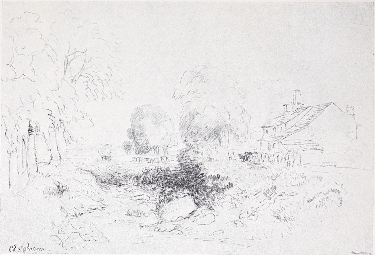 In 1805, Cox made his first journey into Wales. He supported himself at this time by working up the sketches made on such tours, and by chance commissions for scenery. A bill is still in existence, dated February 15, 1808, for “painting 310 yards of scenery at 4s. per square yard.” The year when he executed this lucrative commission was the year of his marriage to the eldest daughter of the landlady in whose house at Lambeth Cox had lodged since his arrival in London. His wife, who was eight years his senior, is said to have been a slight, delicate woman, of a naturally cheerful disposition. The young couple rented a small cottage at the corner of Dulwich Common, “just past the College on the road to the right.” Dulwich Common at that time was a wild and lonely spot, much frequented by gypsies, whose donkeys and picturesque rags and surroundings formed excellent material for the young artist’s compositions.