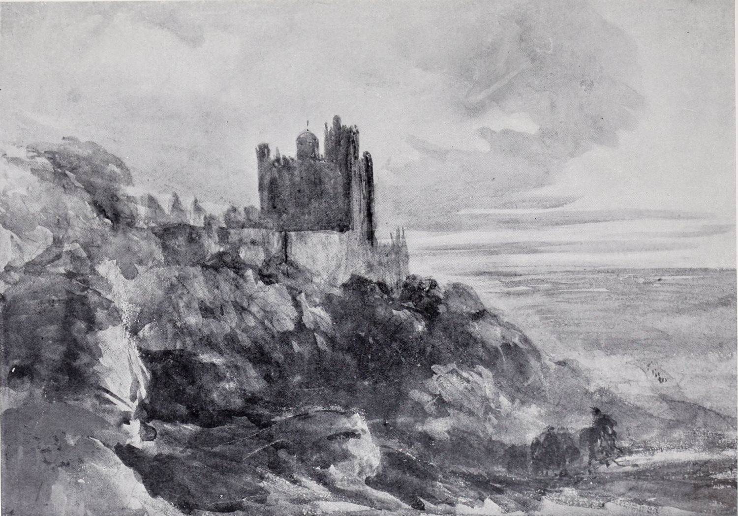 Receiving an offer of employment from Astley, the proprietor of Astley’s circus, Cox, at the age of twenty-one, moved to London. Astley’s offer coming to nothing the artist had a hard time of it.{9} He executed various odd commissions for scenery for provincial theatres and disposed of small drawings at the modest rate of two guineas a dozen to various London dealers. London, however, offered more opportunities for study than Birmingham, and Cox made the most of them. He managed to become possessed of a collection of indifferent etchings from paintings by Poussin, Salvator Rosa and Claude, which had been published by Pond between 1741 and 1746. These he copied and studied for the sake of their composition and arrangement of light and shade, and a dealer named Simpson, who kept a shop in Greek Street, Soho, allowed him to make a large copy in water-colour of a fine painting by Poussin which hung in his shop. Cox’s first important picture was based on the arrangement and effect of this Poussin. It is a drawing of Kenilworth Castle, an autotype of it being published in Mr. Neal Solly’s admirable “Memoir of the Life of David Cox” (Chapman & Hall, 1873), a volume to which we are indebted for the details of the artist’s early life. The Kenilworth in Mr. Solly’s opinion cannot be dated later than 1806 or 1807; and to judge from the photographic reproduction it is especially interesting as an example of the imitative methods which were rife among the artists of those days. The works of the older and more successful masters were accepted as models to be copied and imitated.