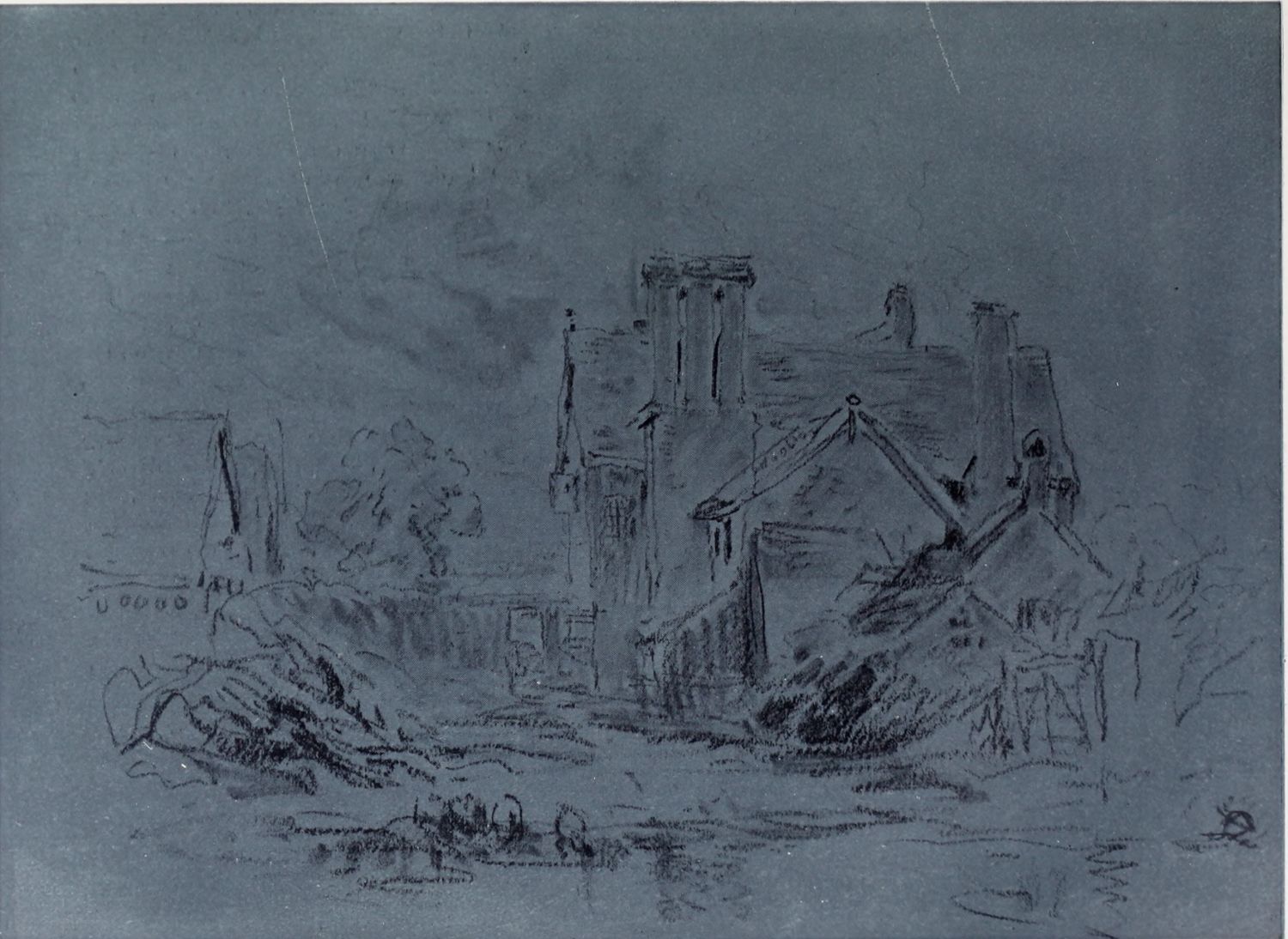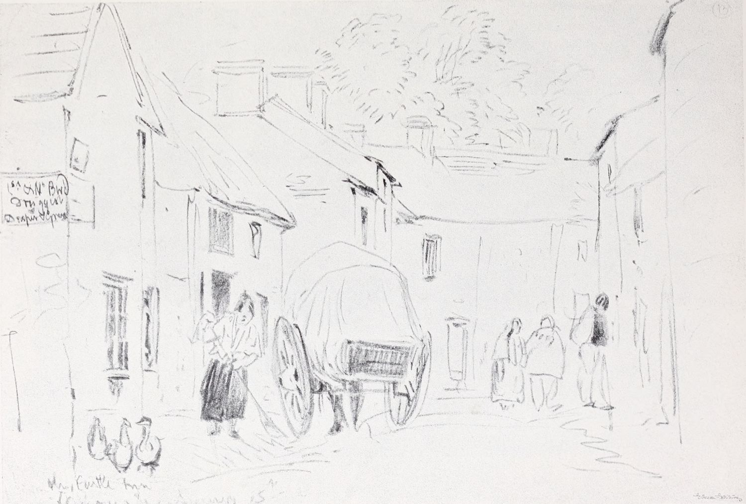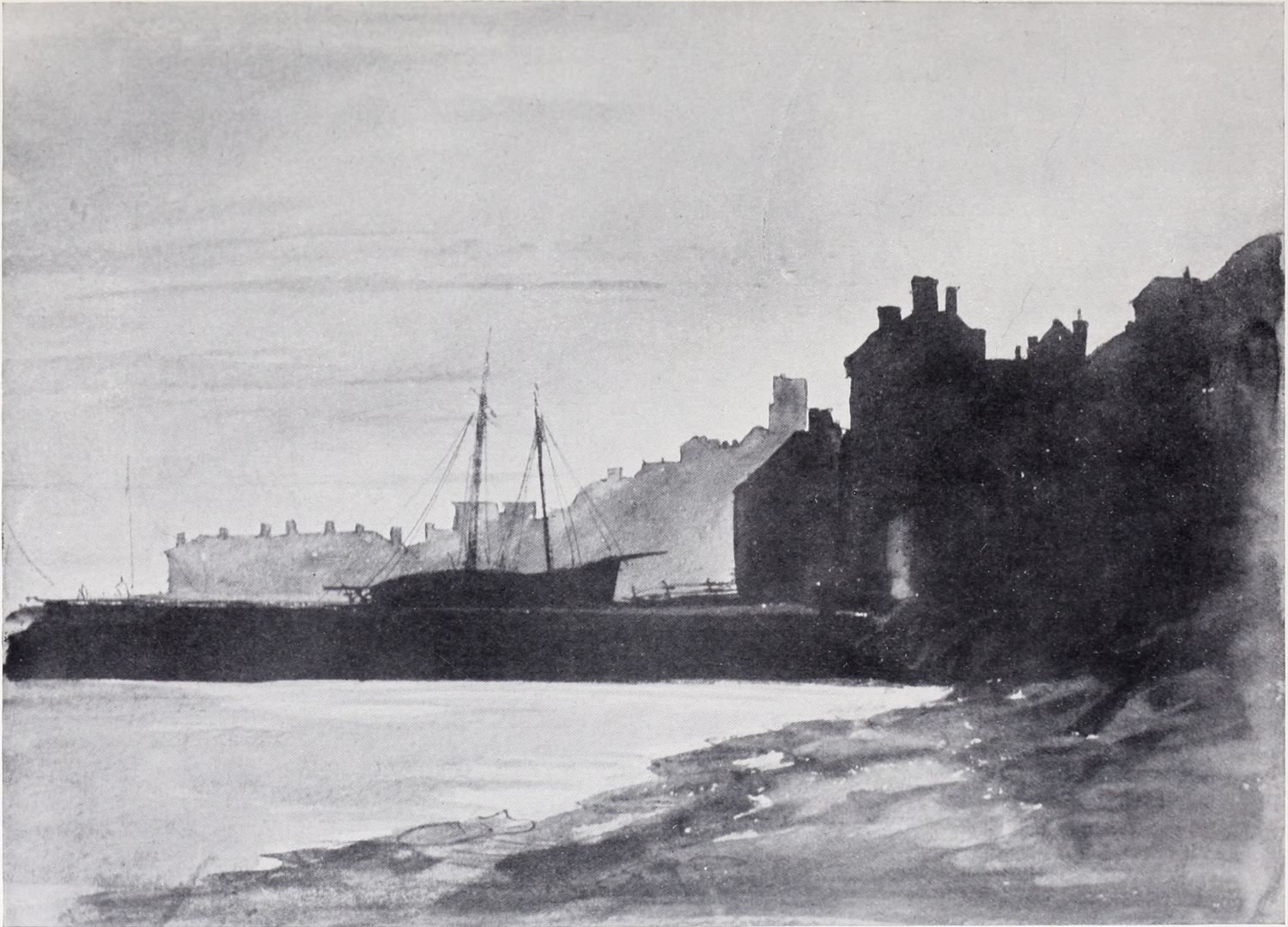 Reproductions of a number of charcoal and chalk sketches belonging to this later period of his life have been included in the present volume. Large charcoal drawings like The Salt Marsh (Plate XXV.), The Beach (Plate XXVII.), Windy Weather (Plate XXVIII.), and The Hill Side (Plate XXXIII.), lose something of their impressiveness when reduced in size, as these have necessarily been, but enough remains, even in this form, of their freshness, largeness of conception and sense of movement, to delight the intelligent amateur. No one at all susceptible to the higher beauties of art could remain insensible to the fascination of the bold, synthetic handling of The Peasants on Horseback (Plate III.). In some of these late sketches—notably in the two Near Kenilworth (Plates VII.{18} and XXIV.)—the loose, flowing touch often seems a trifle too disdainful of the individual forms of objects. But when the artist is serenely self-possessed his style is delightfully intimate and unbuttoned, a candid revelation of his sympathies and moods. When thoroughly interested he becomes astonishingly vivid and succinct, as in the Kirkby Stephen (Plate XX.), Llanrwst (Plate XVI.), and Clapham, Yorkshire (Plate XXII.). How much his art had become a matter of feeling and impulse is shown by the glaring way he fails when his sympathies have not been aroused; the draughtsmanship of the Architectural Study (Plate XXII.) is about as bad as draughtsmanship can well be—bald, perfunctory, external. The pencil and stump drawing of Carnarvon Castle (Plate XXX.), for all its lightness and charm of atmospheric suggestion, is “mappy” in draughtsmanship—its drawing being mere “spacing,” without intimacy in the form or sympathy with the structure. The drawing of Rotterdam (Plate XLI.) is again external and unsympathetic. These drawings might well have been chosen as illustrations of the truth of one of Cox’s own remarks: “Merely to paint” (or draw) “is not enough, for when no interest is felt nothing is more natural than that none should be conveyed.”