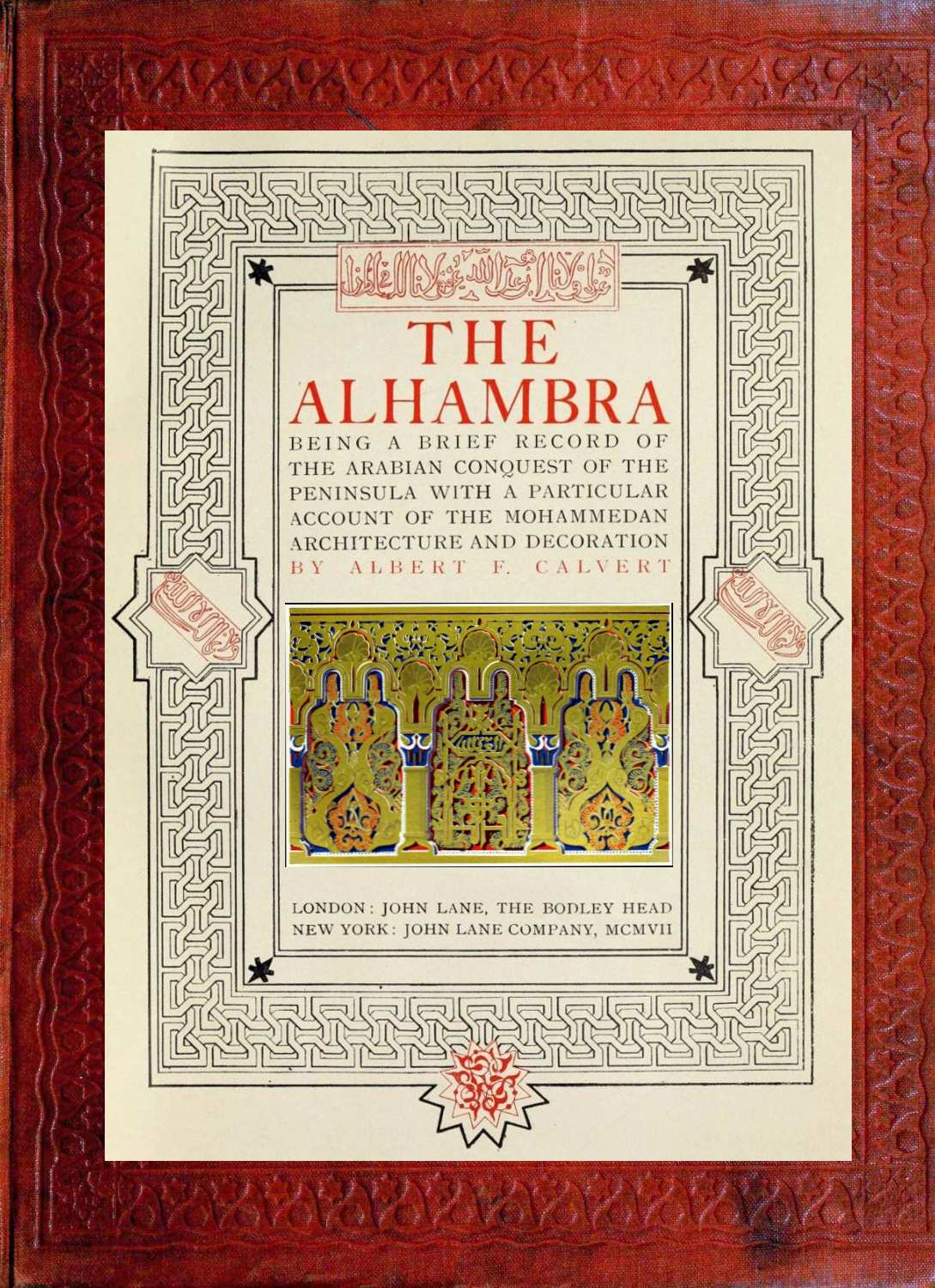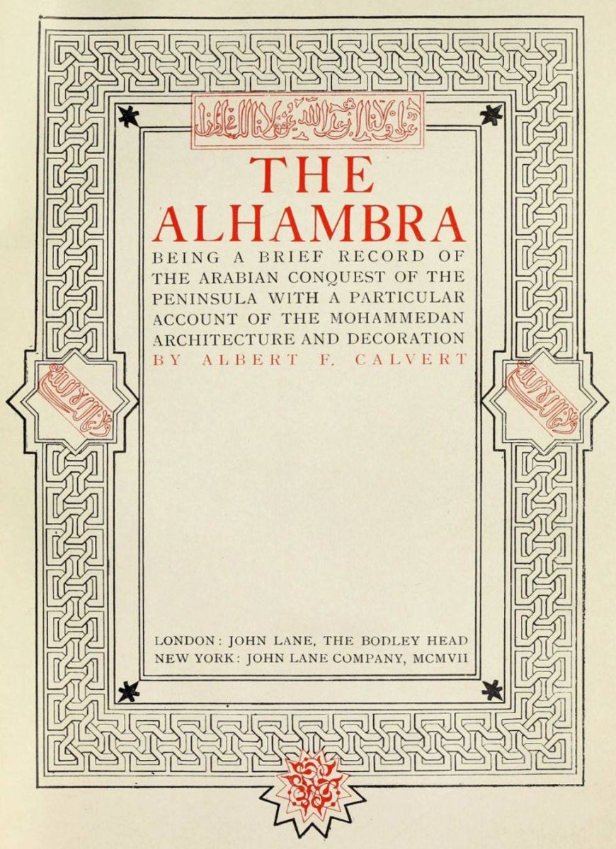 THE compilation of a book of this kind reveals in the author a refreshing optimism which does not always survive the ordeal of publication, and it is perhaps out of sympathy with the misgivings that assail him as he approaches the bar of public and critical opinion, that convention cedes to him the privilege of making some apology for the faith that is in him. In his preface he is permitted to explain himself, and this apologia or justification, call it which you will, stands as the last word in his own defence. But the demand for a further edition is the outcome of an amiable conspiracy on the part of the public, and it is not required of the author to explain, justify, or excuse an issue for which he is not directly responsible. Any revision or amplification, however, which is to be found in a second impression, may be briefly referred to, and at the same time tradition allows him to express the feelings of gratitude and gratification that the occasion inspires. It has been my ambition to acknowledge the favour with which this book has been received, by having this edition produced with the greatest care on special paper, and by the addition of a number of new illustrations, including some half-tone and coloured plates reproduced from the Monumentos Arquitectonicos de España and others, which I have acquired since it was first produced. It will be seen that several of the coloured pictures illustrate designs which are common to the Arabian ornamentation to be found in Cordova and Seville, and as being representative of the Moresco work of the period, they also appear in the companion volume on “Moorish Remains in Spain,” but it may be stated that the whole of the plates reproduced here are from photographs and drawings secured,{xii} or specially made to illustrate The Alhambra. In its pictorial appeal it has been my ambition to make this edition as worthy of its subject as means and ability permit, and I offer this assurance as an earnest of my sincere appreciation of the generous manner in which the Press and public rewarded my previous effort.