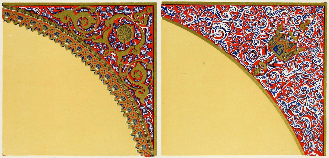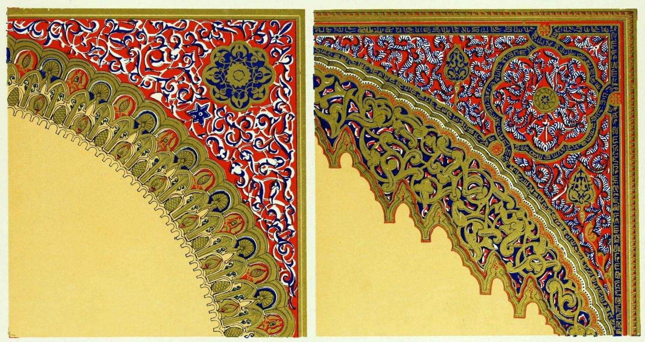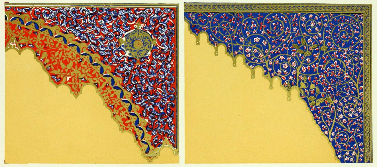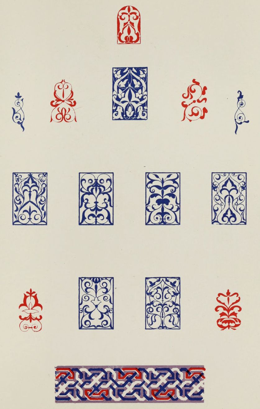 “It is really impossible to do justice, in a journal of this kind, to the sumptuous volume (its price is two guineas and the book is worth it) before us. To do that—to give the reader any adequate notion of the beauty of the illustrations with which it is enriched—we should have to summon all the resources of the colour printer’s art to our assistance, in order to reproduce them in a special edition de luxe of the “P.M.G.” Inasmuch as that is not to be done, we must ask the reader to take it on trust from us that the illustrations of Moorish decorative art are something quite out of the common.... The making of this book must, surely, have been a labour of love; and love’s labour has certainly not been lost.”—Pall Mall Gazette.