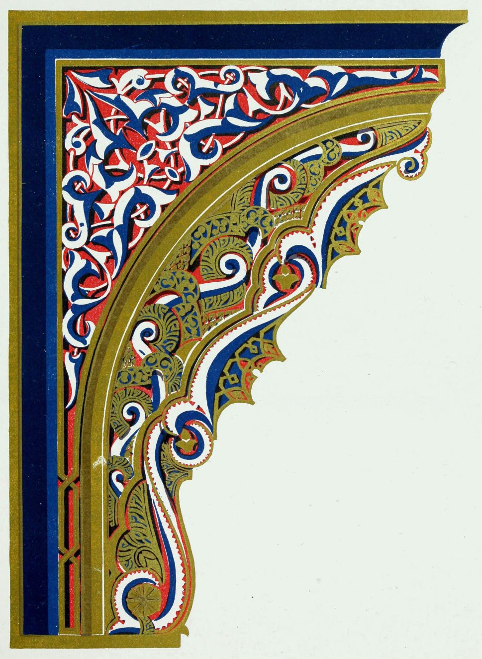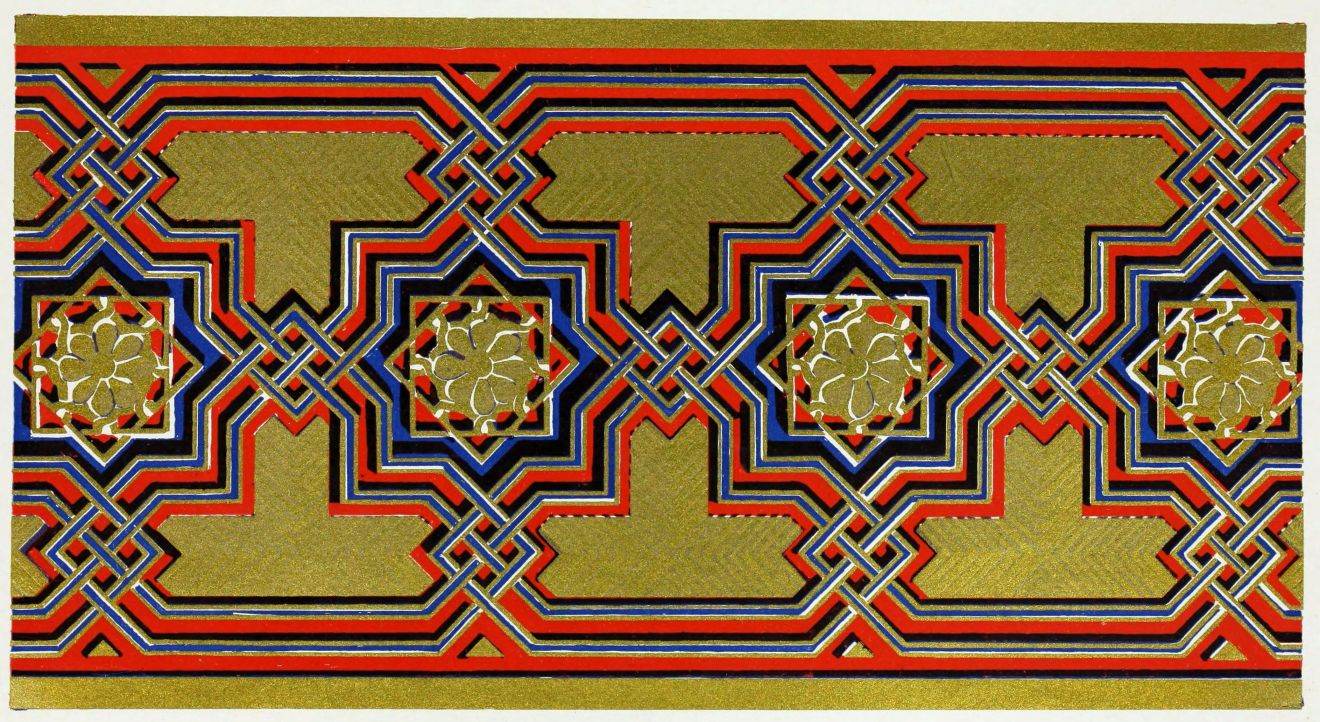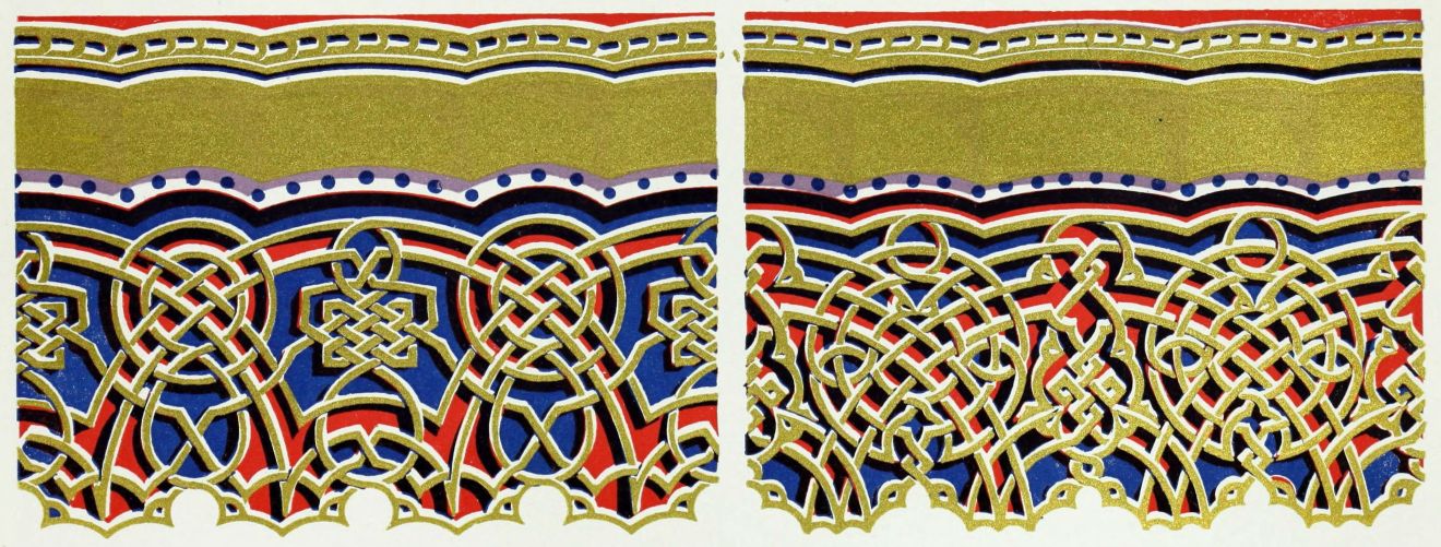“It is really impossible to do justice, in a journal of this kind, to the sumptuous volume (its price is two guineas and the book is worth it) before us. To do that—to give the reader any adequate notion of the beauty of the illustrations with which it is enriched—we should have to summon all the resources of the colour printer’s art to our assistance, in order to reproduce them in a special edition de luxe of the “P.M.G.” Inasmuch as that is not to be done, we must ask the reader to take it on trust from us that the illustrations of Moorish decorative art are something quite out of the common.... The making of this book must, surely, have been a labour of love; and love’s labour has certainly not been lost.”—Pall Mall Gazette.