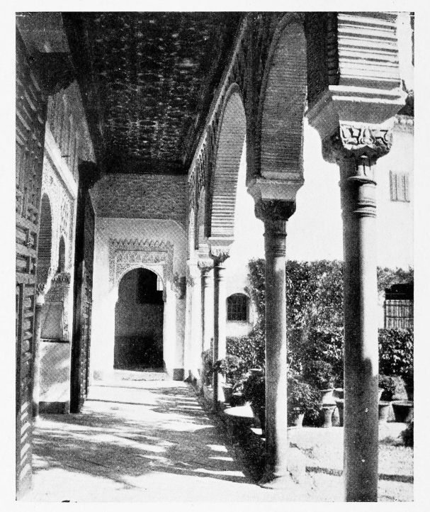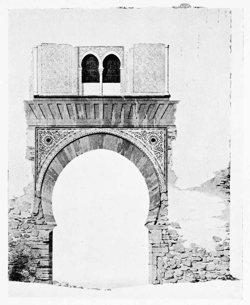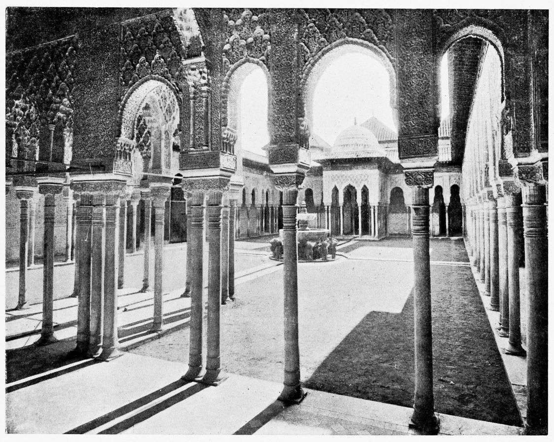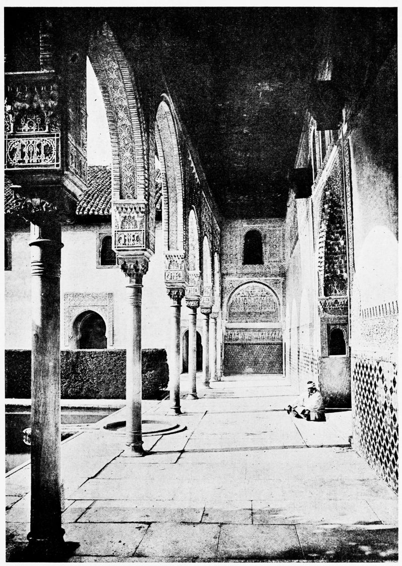 For the historical portions of the description contained in the letterpress I have levied tribute on a variety of authors. The History of the Mohammedan Dynasties in Spain, by the learned Spanish Orientalist, Don Pascual de Gayángos; Raphaël Contreras’ Etude Descriptive des Monuments Arabes; Richard Ford’s reverent appreciations; Dr. R. Dozy’s history; Mr. Stanley Lane-Poole’s The Moors in Spain; Washington Irving’s fascinating writings; and The Alhambra Album, presented by Prince Dolgorouki in 1829, containing the autographs, poems and thoughts of succeeding generations of visitors to Granada, these and many others have been drawn upon in the following pages.