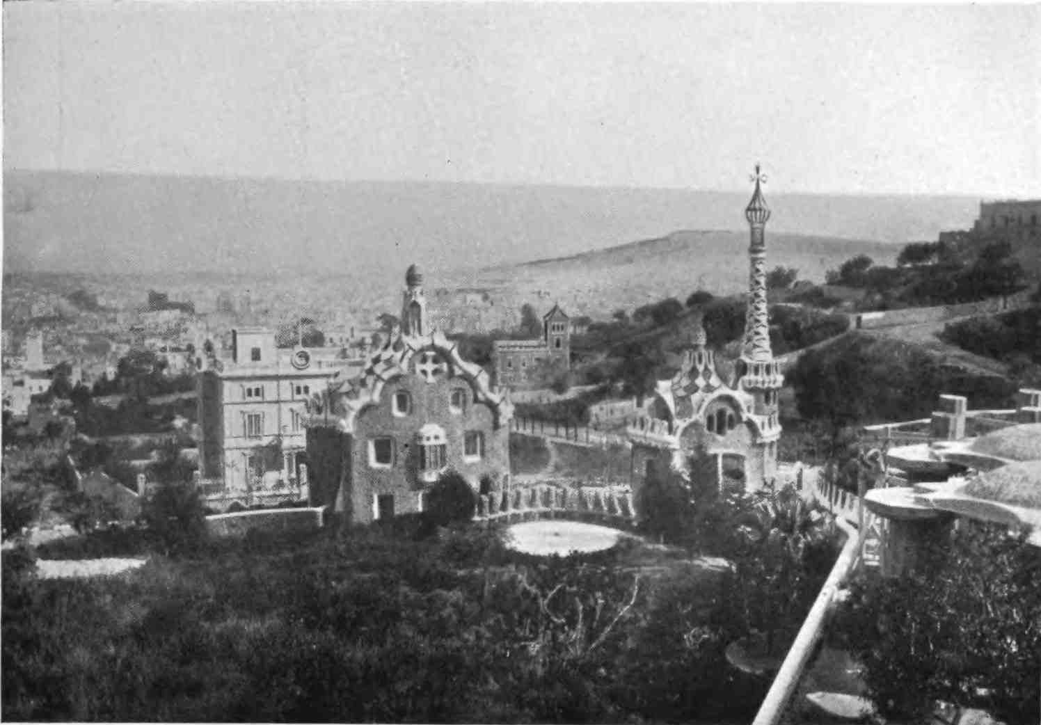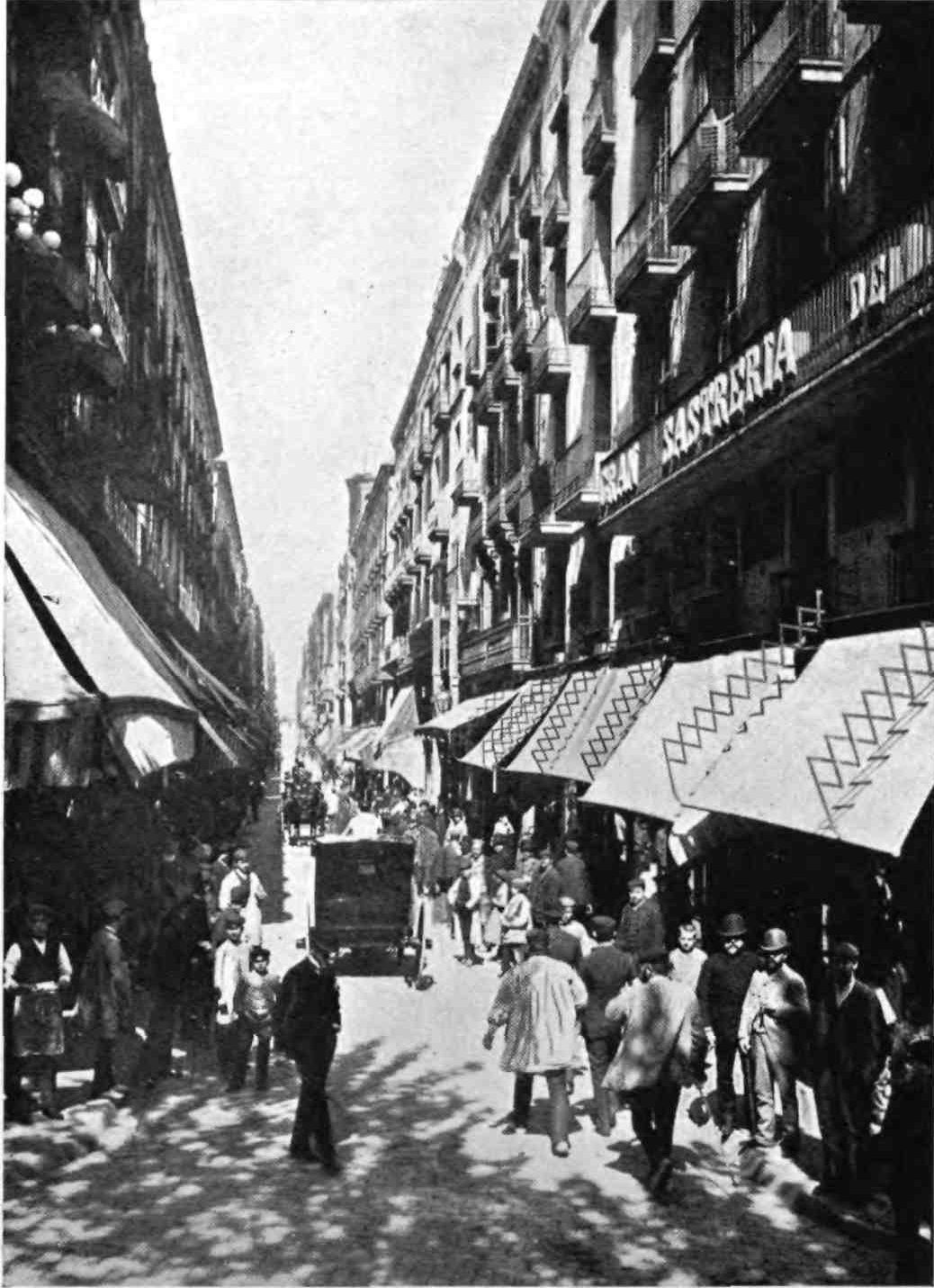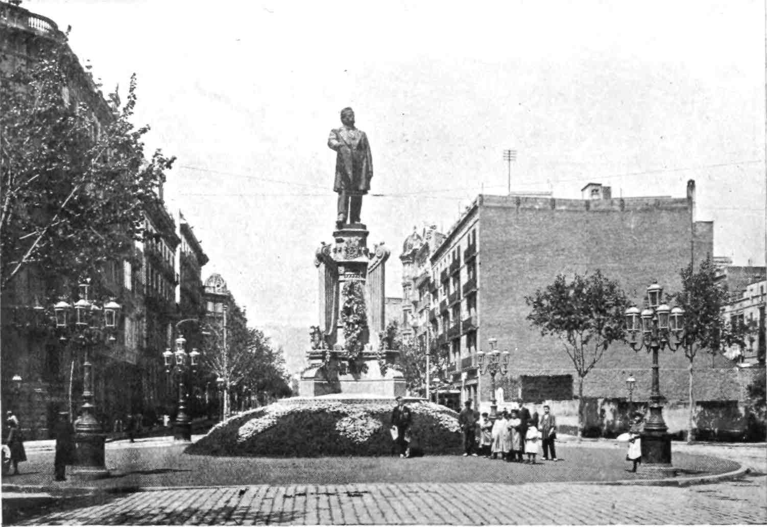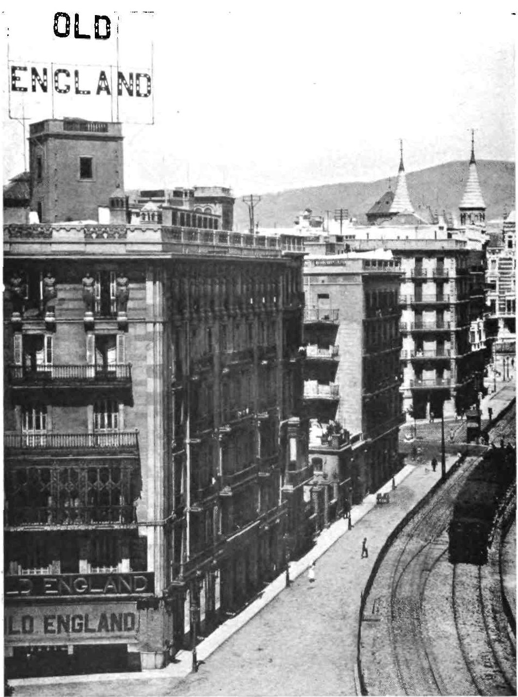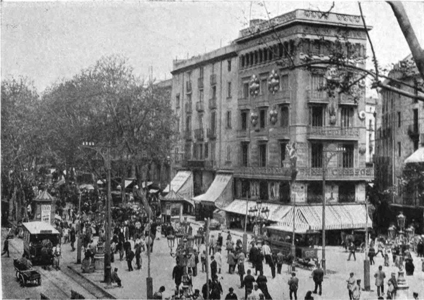 Barcelona has remained true to her traditions. She is still, as of old, a city of merchant princes, a hive of industry, at once the Liverpool and Manchester of Spain. To those who visit the capital of Catalonia after an acquaintance only with the moribund cities of Old Castile, this vision of España Moderna comes as a shock and a revelation. The first impression is not pleasing. You approach the city through a vast wilderness of suburbs, teeming with life, and breathing apparently through grimy factory chimneys. We realise that we have returned to the civilised twentieth century. But the brighter side of modernity is soon revealed. In its heart Barcelona is clean, bright, and spacious. The boulevards are unequalled in Europe—except perhaps by Budapest—and the street prospects are worthy of Washington. The Rambla is the most delightful of promenades; in the Calle Fernando the contents of every shop window tempt the unthrifty. A noble, beautiful modern metropolis, still worthy of Cervantes’ encomium: “Flor de las bellas ciudades del mundo, honra{9} de España, reglo y delicia de sus moradores, y satisfacción de todo aquello que de una grande famosa, rica, y bien fundada ciudad, puede pedir un discreto y curioso deseo.”