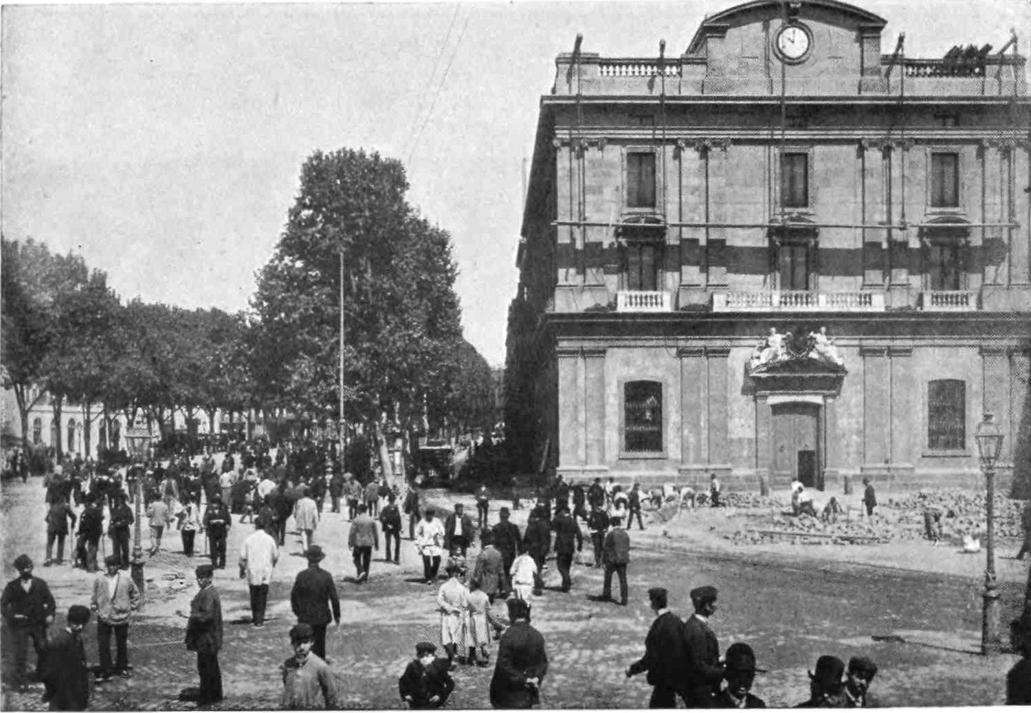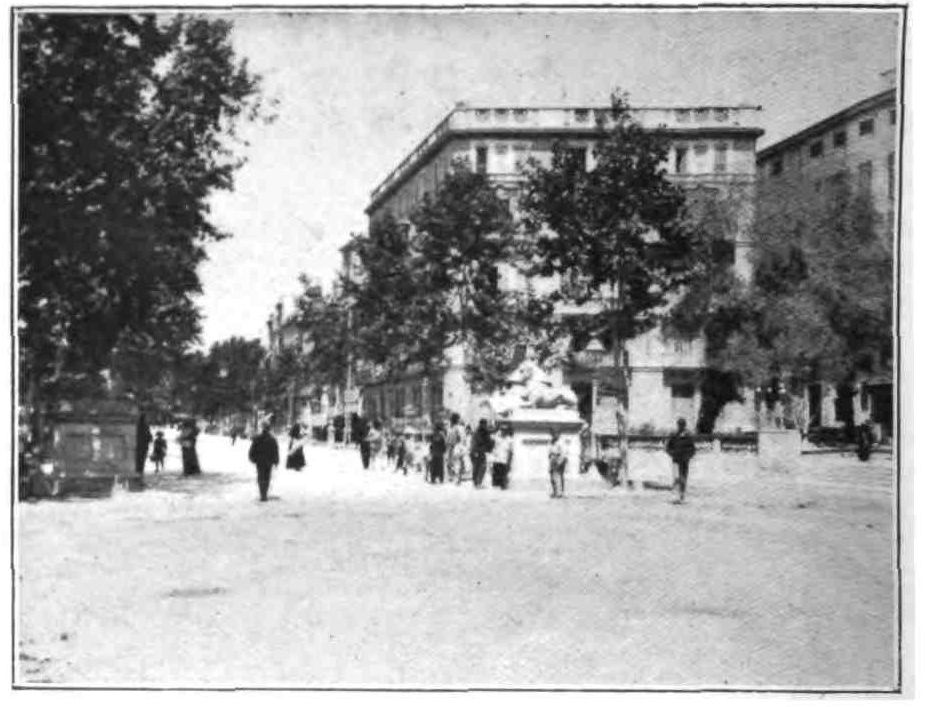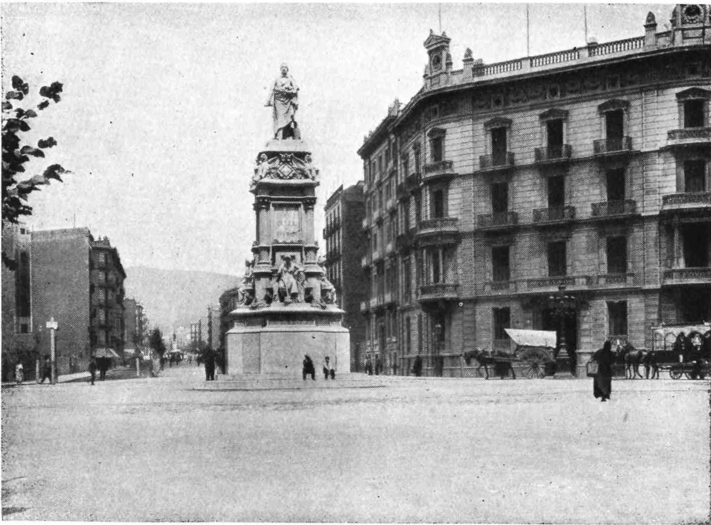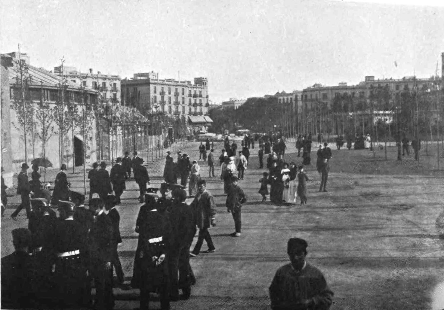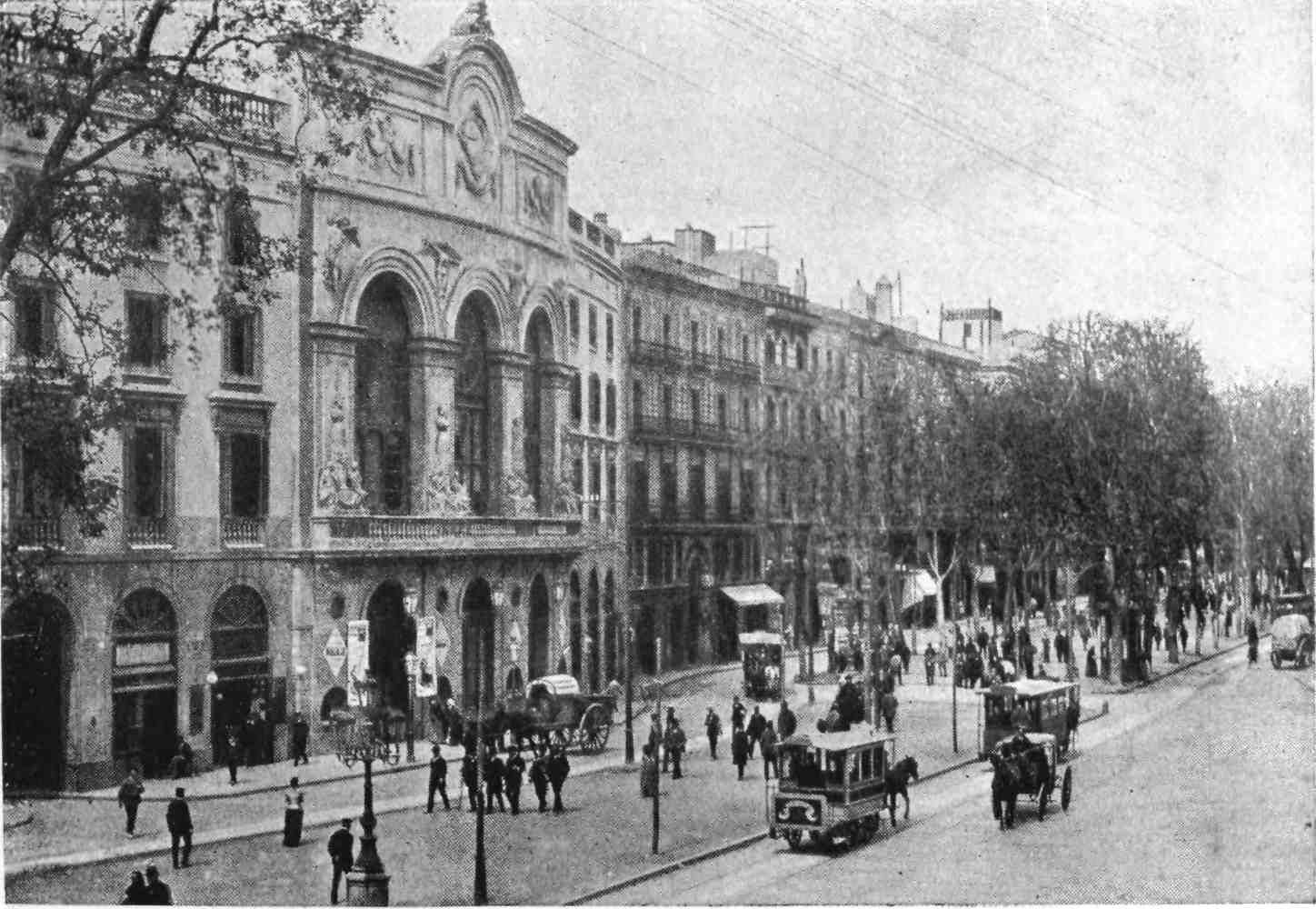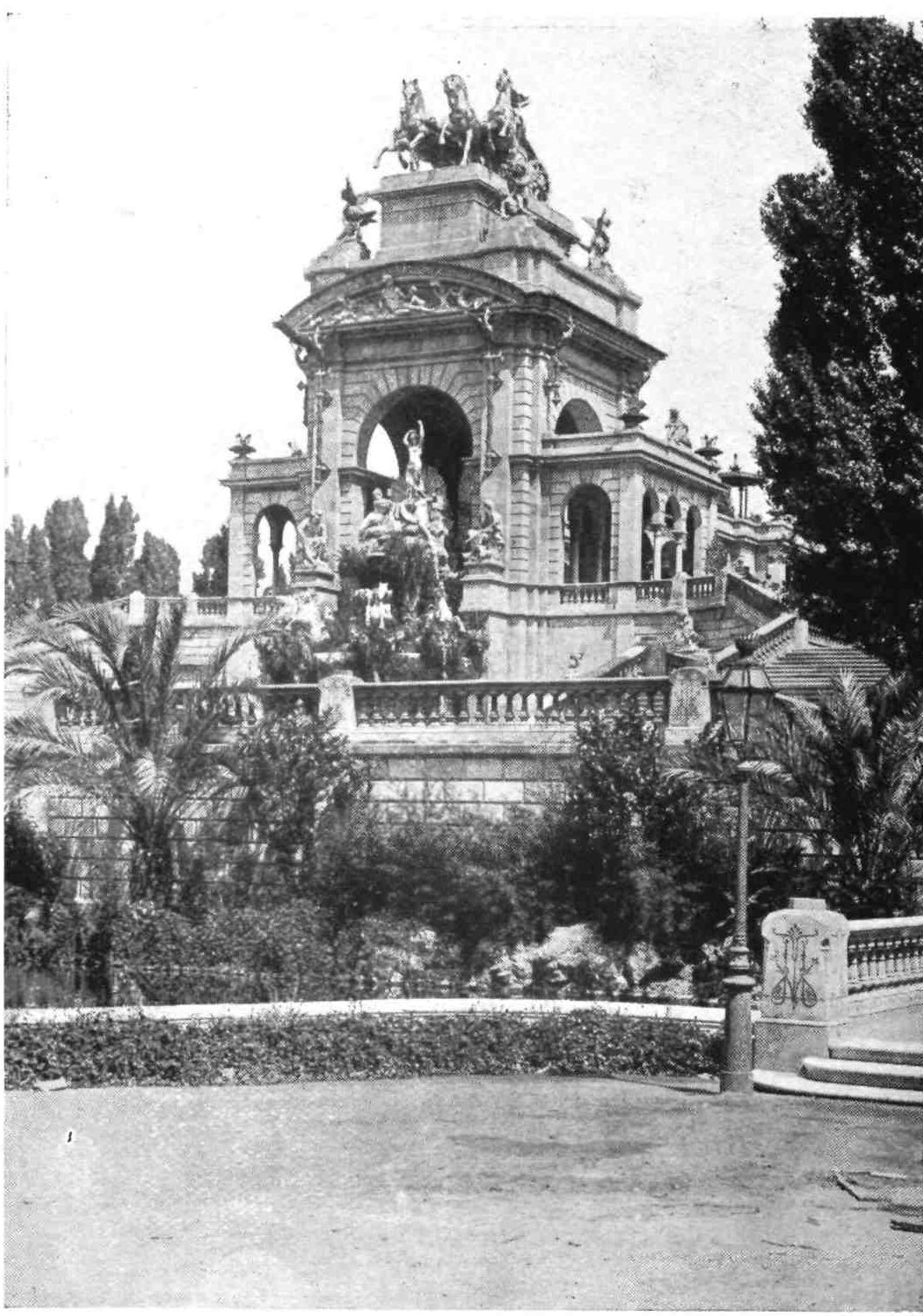 Barcelona has remained true to her traditions. She is still, as of old, a city of merchant princes, a hive of industry, at once the Liverpool and Manchester of Spain. To those who visit the capital of Catalonia after an acquaintance only with the moribund cities of Old Castile, this vision of España Moderna comes as a shock and a revelation. The first impression is not pleasing. You approach the city through a vast wilderness of suburbs, teeming with life, and breathing apparently through grimy factory chimneys. We realise that we have returned to the civilised twentieth century. But the brighter side of modernity is soon revealed. In its heart Barcelona is clean, bright, and spacious. The boulevards are unequalled in Europe—except perhaps by Budapest—and the street prospects are worthy of Washington. The Rambla is the most delightful of promenades; in the Calle Fernando the contents of every shop window tempt the unthrifty. A noble, beautiful modern metropolis, still worthy of Cervantes’ encomium: “Flor de las bellas ciudades del mundo, honra{9} de España, reglo y delicia de sus moradores, y satisfacción de todo aquello que de una grande famosa, rica, y bien fundada ciudad, puede pedir un discreto y curioso deseo.”