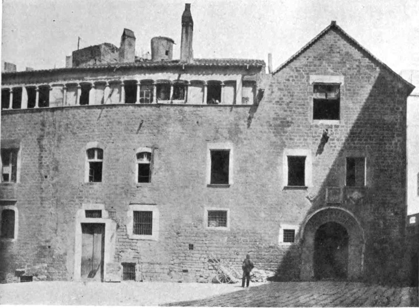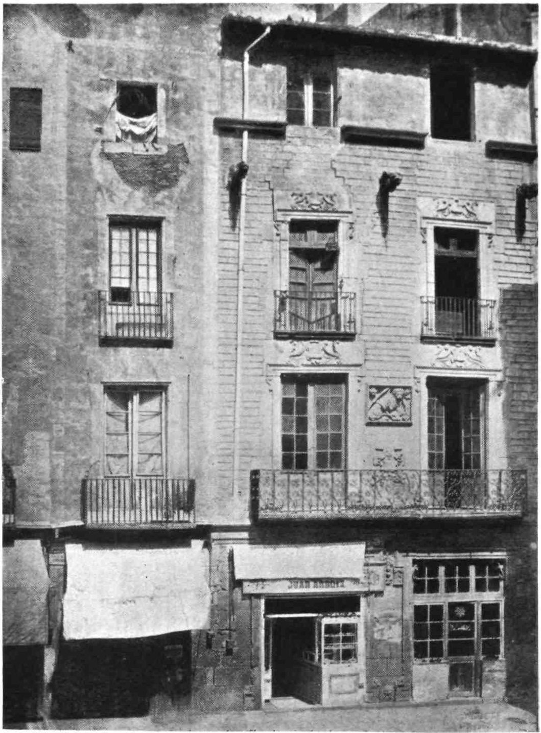 A picture of his funeral may be seen at the Town Hall, which is a rather imposing Renaissance building adorned by one of those heavy projecting eaves, carved and once painted, that one sees at Granada. Another house that should be noticed is the Casa Bonapart, said to have been founded by an ancestor of the Imperial family in 1411.