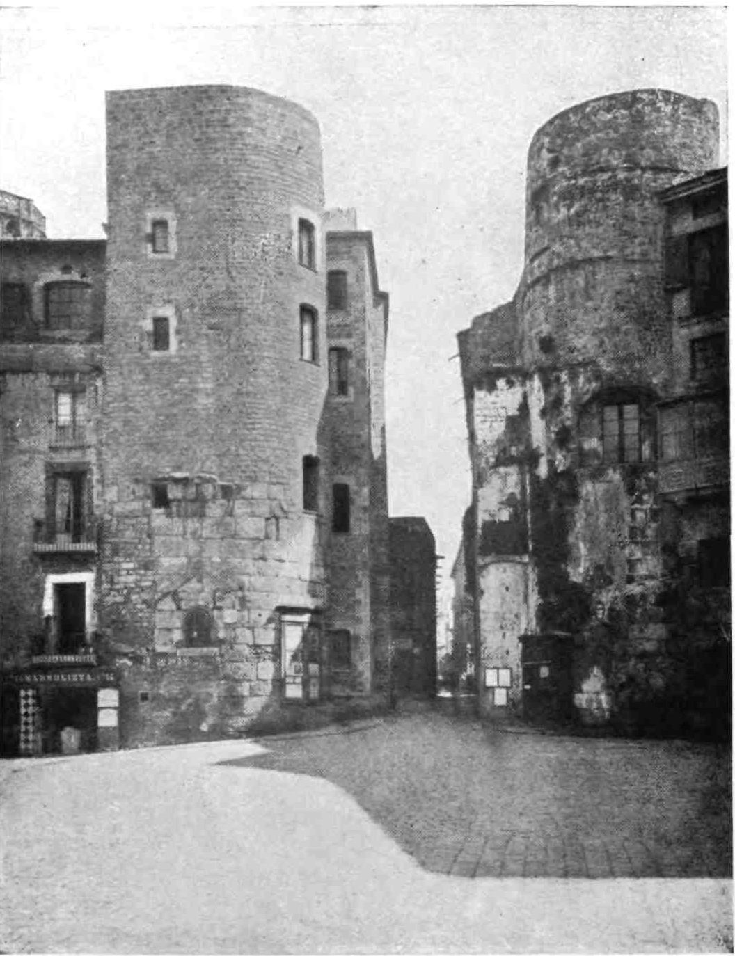 Gerona, then, has covered itself with glory, not once, but repeatedly. The very paynim Moors were invigorated by the heroic atmosphere, for we read that as long ago as 785 they defied the arms of Louis the Pious, till the Christian townsfolk, thinking that enough had been done for the renown of Gerona, arose and expelled them. In the succeeding centuries the Geronese grew used to this business of sieges, and their assailants{24} grew more wary. In 1285 the French King, Philippe le Hardi, sat down before the town and contentedly starved it into submission. Gerona yielded under protest, and took care to place it on record that she was not taken by force but by hunger, as the inscription not “per forsa, mes per fam” over the Puerta de la Cárcel to this day testifies. More than four centuries later came another Philippe from beyond the Pyrenees, welcomed by all Spaniards except Catalans. Gerona stubbornly held out for Austrian Charles, and her garrison of 2000 men bade defiance to Philippe’s 9000. The Bourbon won; and to punish the recalcitrant city abolished her University. But a hundred years after, Gerona recovered her laurels. Her garrison of three hundred men, commanded by Colonel O’Daly, withstood successfully the repeated assaults of 6000 French under Duhesme, and beheld in August 1808 the hurried and inglorious flight of the besiegers. Of the great siege of 1809 you may read in the pages of Napier. The commander and hero of the defence was Mariano Alvarez—a much finer fellow than Palafox; and had he not been stricken with fever and rendered unconscious, the town might not have surrendered, as it ultimately did after a seven months’ siege. It had cost Napoleon 15,000 men. Here, as at Saragossa, the women fought beside the{25} men and worked the guns, under the banner of St. Barbara. Unconquerable Gerona! Well might the heirs to the crown of haughty Aragon have been proud to bear the title of your prince.