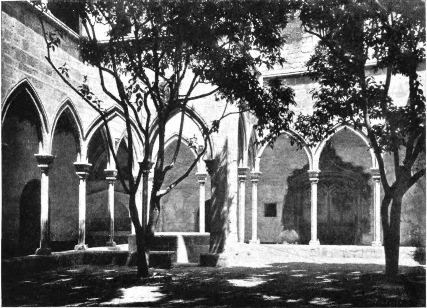 Here, as at Poblet, the Kings of Aragon had their habitations in life as in death, and the courts of the ruined palaces of Don Pedro and Don Jaime still bear some traces of the glory and culture of the greatest maritime power of the Mediterranean of a bygone age.{72}