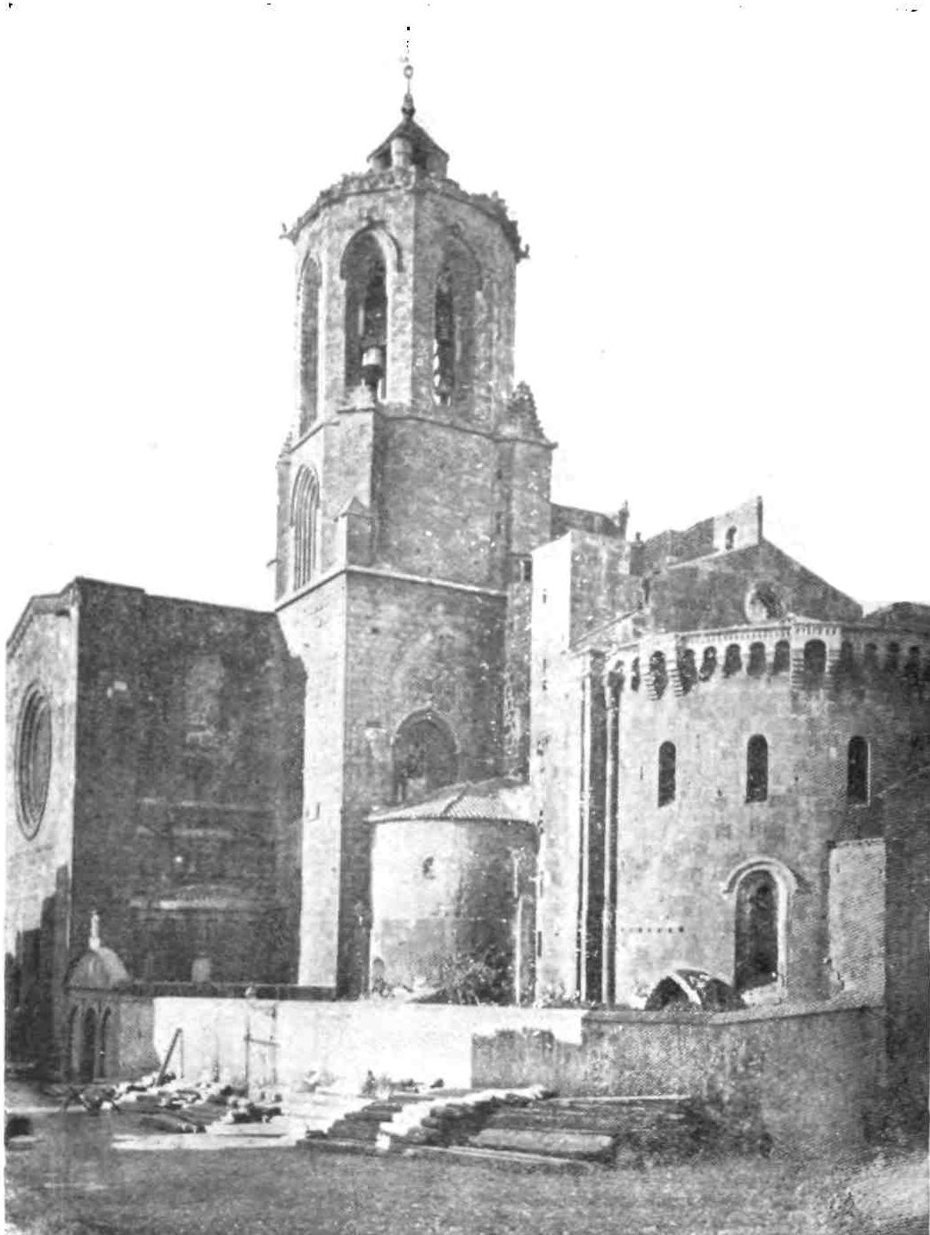 Not far from Manresa is the flourishing town of Tarrassa, which occupies the site of the old episcopal city of Egara. The primitive arx or citadel gave place in Christian times to a cathedral which was destroyed by Al Mansûr, and the site is now occupied by the three interesting Romanesque churches of San Miguel, Santa Maria, and San Pedro.