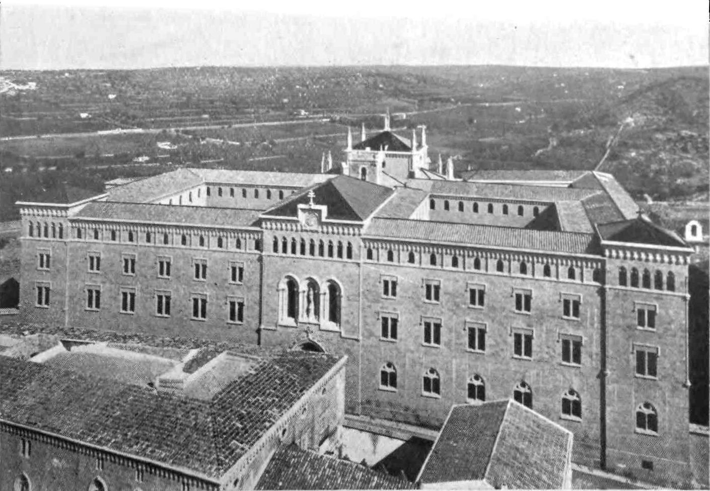Higher up the Segre is the historic town of Balaguer, the Bargusia of Livy, and the capital of the ancient county of Urgel. The counts had their residence in the “Beautiful Castle” (“Castillo hermoso”) which overlooked the town and has now totally disappeared. There are a few ruins of the once famous priory of Santo{48} Domingo. The site of the castle is occupied by the church of Santa Maria, built in 1351. It is a dignified, simple edifice, of a single nave with lateral chapels. The Trappist monastery of Bellpuig de las Avellanas a little way out of the town is another and better preserved monument of the piety of the old Counts of Urgel whose line expired with Jaime el Desdichado at the beginning of the fifteenth century.