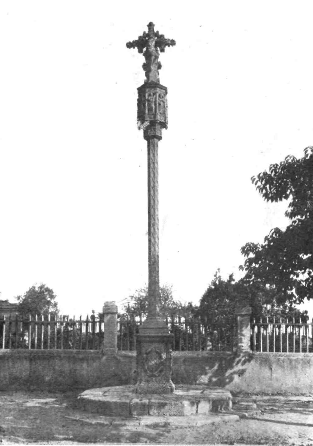 The octagonal campanile dates from the fifteenth century, to which period belongs the western gallery. There is a good deal of pointed work in the church, which is gloomy and religious. The high altar, dating from about 1400, has a reredos which is highly praised by some critics.