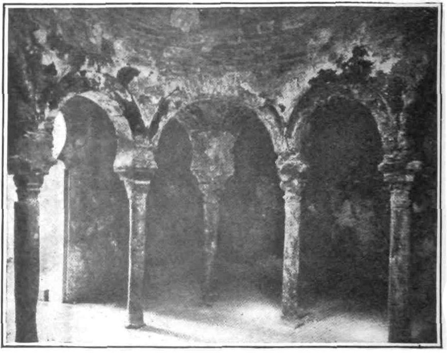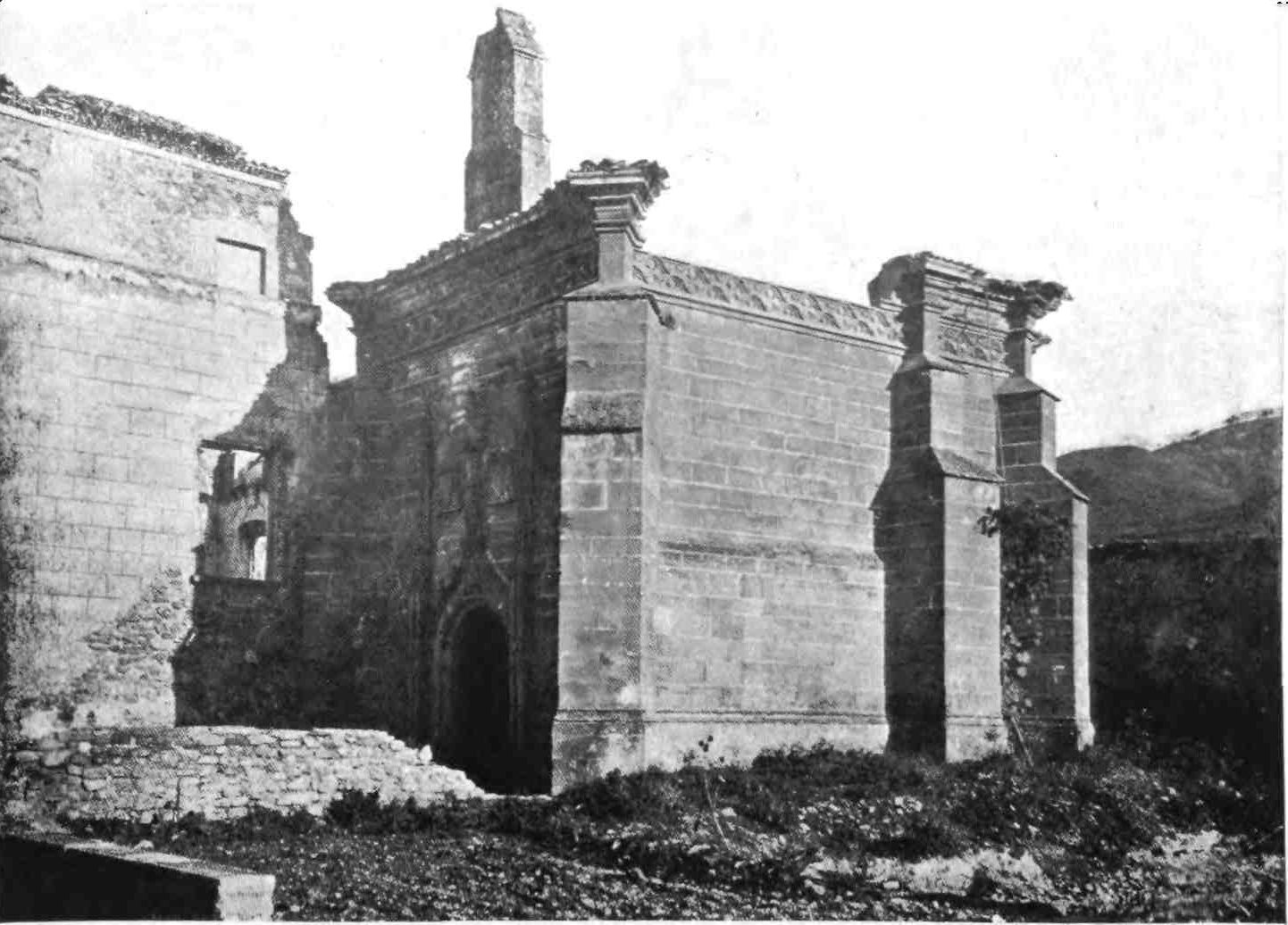The interior of the church is now cut horizontally by a plank flooring, and no features of interest can be distinguished, except in a single apsidal chapel, which is still used as such, and where is buried a natural son of King Pedro the{46} Catholic, who died in 1254. Whitewash has obscured all the details of capitals and columns.