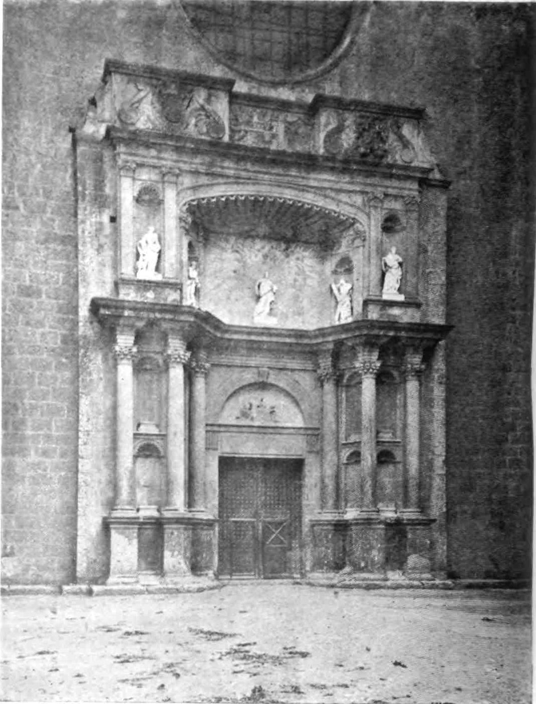This grand church consists, then, of a single nave 73 feet wide, four bays in length, and terminating in the usual semicircular east end. The west front, in the poor style of the seven{27}teenth century, calls for no remark, and gives no promise of the grandeur of the interior. Street thinks the exterior could never have looked very well. Even the south door, executed in 1458, does not merit praise, though its terra-cotta statues are curious and well preserved.