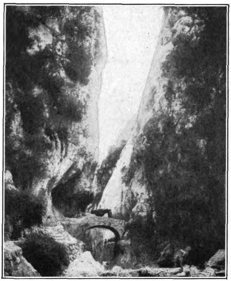 On the other side of the island are the caves of Anta, rivalling those of Han and Adelsberg. “The most fantastic part of this subterranean region,” says Mr. Vuillier, “goes by the significant name of L’Infierno. It is a nightmare in stone. Tongues of petrified flame seem to lick the walls. An enormous lion squats in one corner, staring at unhewn tombs overhung by rigid cypresses. Strange forms of antediluvian monsters lurk half-seen in the obscurity. Many of the stalactites when rapped sharply with a stick emit musical notes, some like the vibration of a harp-string, others like the deep resonance of a church bell. These are in an immense hall as vast as a cathedral nave.... In silence and{97} darkness, the forces of nature have for centuries been hewing and shaping an architecture more sublime than ever was conceived in the wildest dream of the Gothic craftsman.”