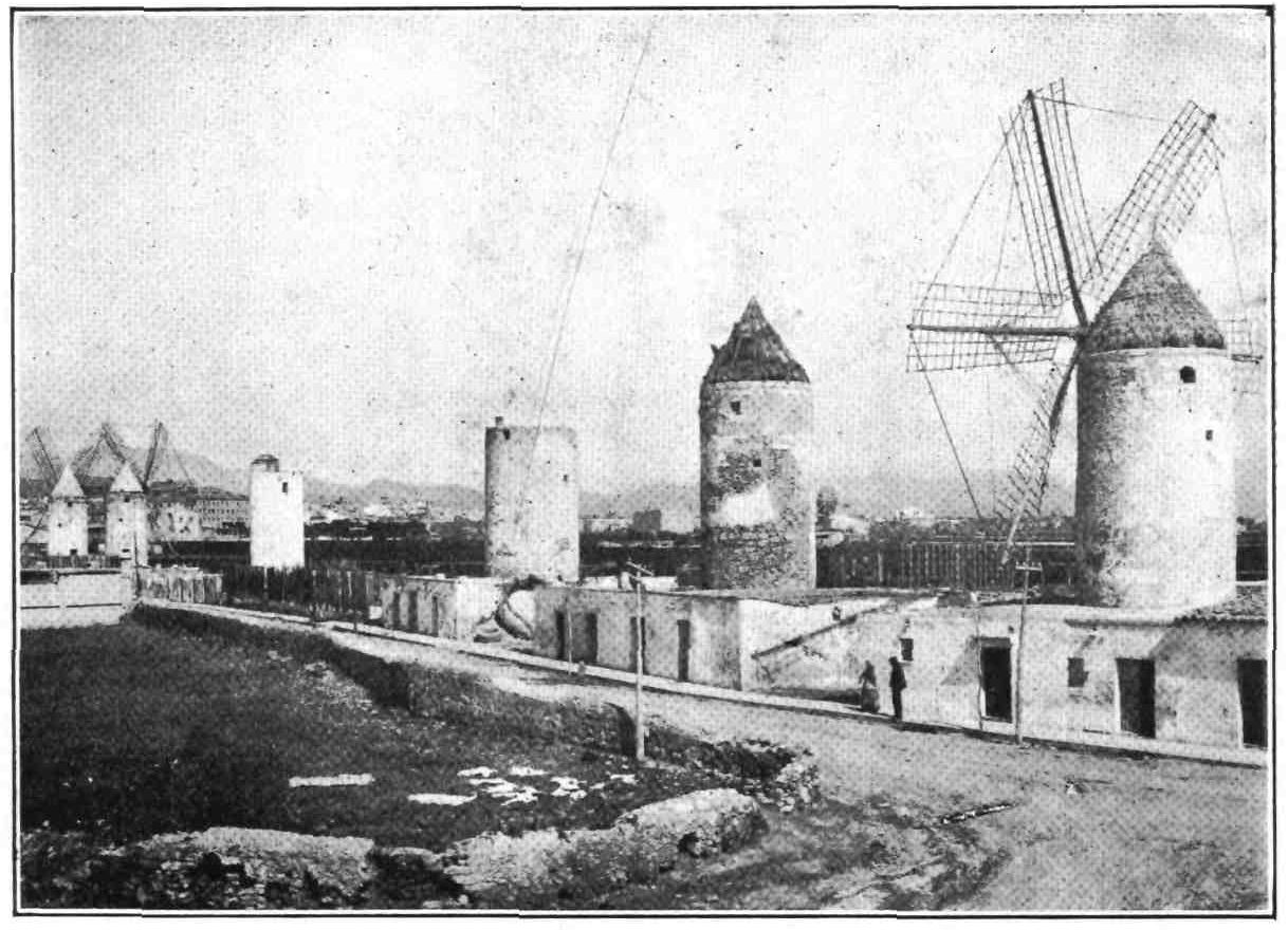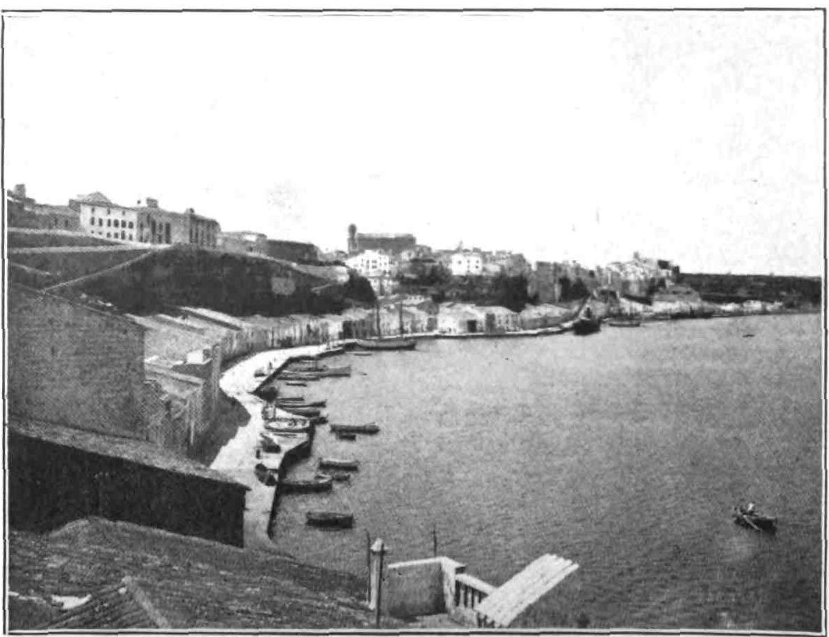 Puerto Mahon was founded, as we have said, by the Carthaginians, and was appropriately enough occupied by us, the Carthaginians of later days. Its harbour is one of the best in the Mediterranean, and is very strongly fortified. Except for the forts, the town contains no public monuments of interest. The streets are very clean and rather quiet, and you remark the absence of the running water in the gutters characteristic of so many European towns. The streets are well paved, often with tombstones from the English cemetery; the dustman goes his rounds as he does in London, and many of the houses have English windows. The domestic life is held in high honour at Mahon, and the chief occupation and delight of the women is cleaning their houses. “It is an amusing spectacle” says M. Vuillier, “to see them armed with brooms of dwarf palm and immense pails of lime-water, gossiping along the walls from early morning, while they scrub and wash as if their lives depended upon it, fastening their brooms to long poles the better to reach the higher parts of the wall. Should a death occur in a house the walls are not whitened for a week, a fortnight or{99} even a month, according to the closeness of the relationship or the degree of grief felt for the deceased. In rare cases the walls are not touched for six months.” The traveller comments on the absence of the tribe of unwelcome bedfellows, so persistent in their attentions in other parts of Spain.
