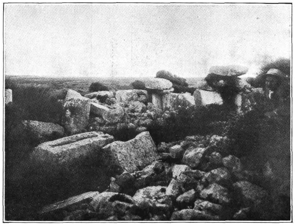 Stones must always have been a plague to the{104} people of the island, and this, besides accounting for their selection of the sling as their peculiar weapon, may partially explain, as Ford reasonably remarks, the abundance of these monuments. “The erection of a large tumulus was not a piece of barbaric extravagance. It provided an unperishable monument for the person it was intended to honour (?) and it got rid of an immense mass of loose stone which greatly impeded agriculture.”