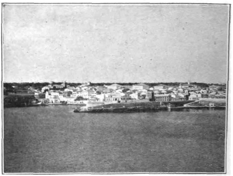 This does not sound very interesting. Mahon is not, however, wholly devoid of the picturesque element. The old gate of Barbarossa is named after that famous pirate, by whom the city was surprised and sacked in 1536, and the fortifications still bear traces of the siege of 1781. Ciudadela, the old capital, at the opposite end of the island, is more suggestive of old times and memories. The streets are quaint and arcaded, and lined with fine old mansions: and there is an old palace, and a vast dim cathedral, which no one has ever properly explored. Ten minutes will be enough in which to exhaust the sights of Ciudadela, and you may then go and look at the Buffador, a blow-hole like those to be seen at Sark.
