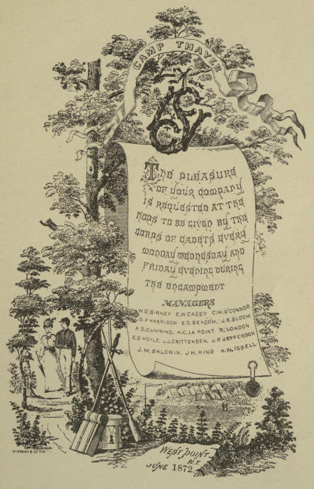 For valuable data I am indebted to Colonel Charles W. Larned, Lieutenant Colonel F. W. Sibley, Commandant of Cadets, Captains W. E. Wilder, F. W. Coe and O. J. Charles, Adjutants, Lieut. M. B. Stewart, Tactical Officer, Dr. E. S. Holden, Librarian, and Mr. William Ward, in charge of Cadet Records from 1851 to 1911, all of the Military Academy, and to Lieutenant Charles Braden, editor of Cullum’s Biographical Register of West Point Graduates.
