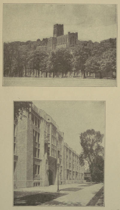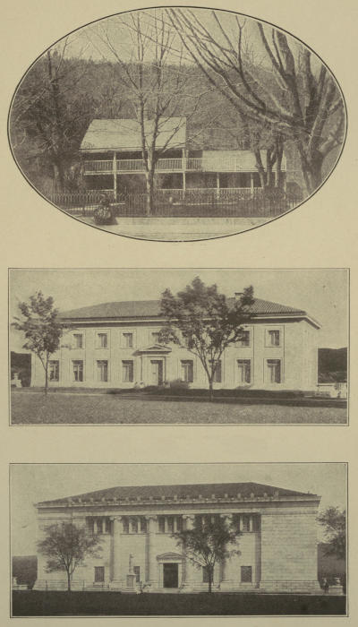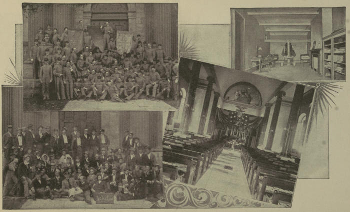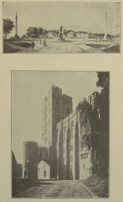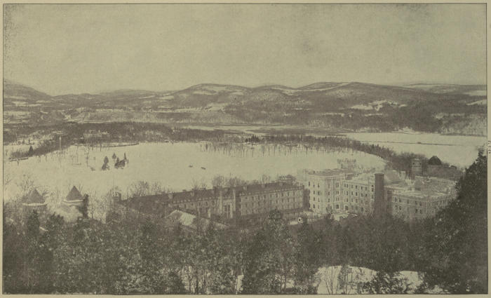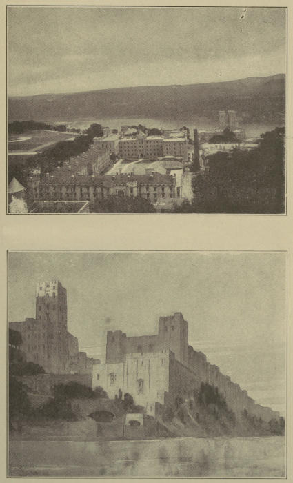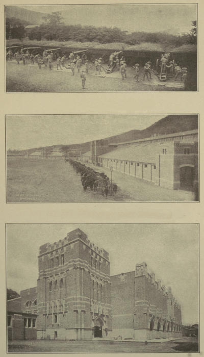 [57] The new Chapel and Chaplain’s quarters on the hill near old Fort Putnam are now in one large beautiful building that was dedicated in June, 1910. Graduates have contributed for a handsome memorial window and Professor Weir’s grand painting, now in the old Chapel, will be put over this window in the new Chapel.