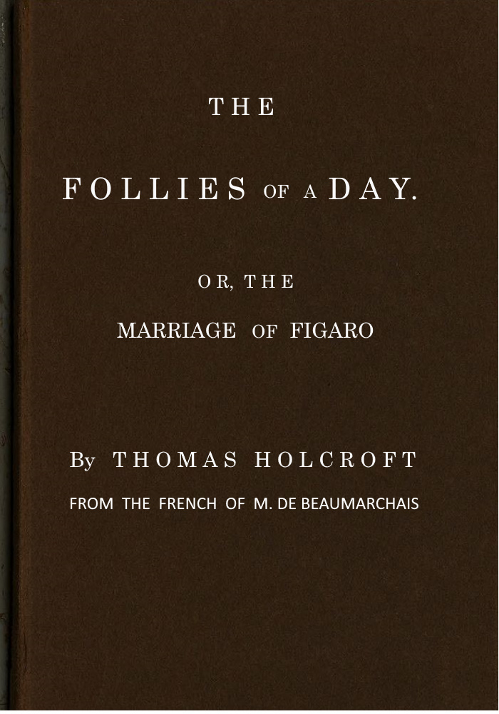 Readers are divided into two Classes; the one will allow an Author much more than he merits, and the other much less; but the principal Excellencies of The Follies of a Day are so known to be another’s Right, that for me to claim them would be ridiculous. Some, however, have affirmed that it is a mere Translation, who have never seen, read, or heard the Original; if they had, indeed, they would have been still more culpable. Few will trouble themselves to examine the precise Extent of my Claims; nor, if they did, would they have an Opportunity ’till M. de Beaumarchais shall think proper to publish La Folle Journée. The Public in general are so willing to overlook Defects, and applaud wherever they can, that to complain of, or be angry at the Few who seek for, and wish to find, Errors only, can proceed alone from that Self-love which is so inherent and[v] irritable in all bosoms, and so difficult to subdue.