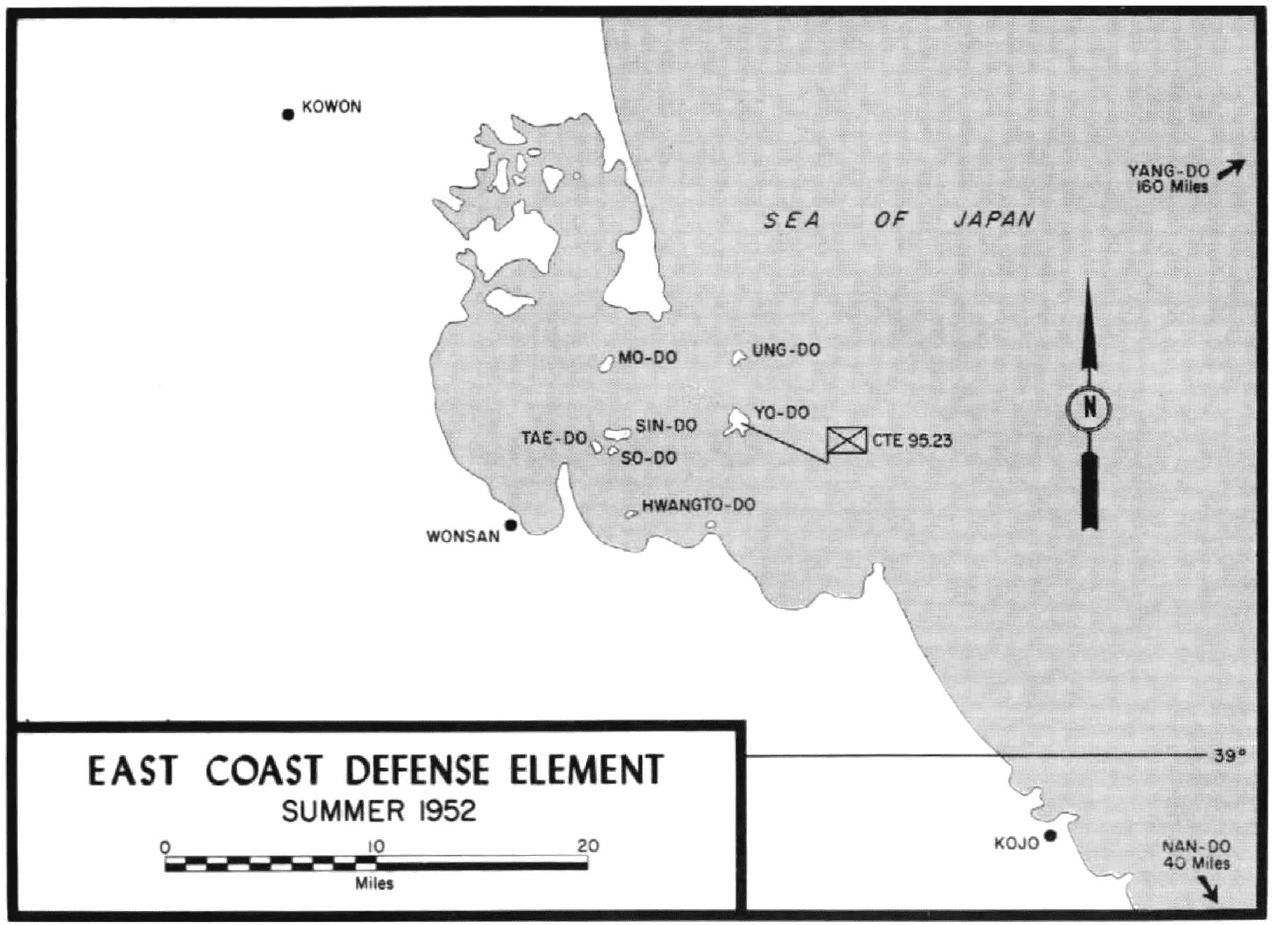 | UN Command Activities—Defense of East and West Coast Korean Islands—Marine Air Operations—Spring 1952 on JAMESTOWN—End of the Second Year of War—A Long Fourth of July—Changes in the Lineup—Replacement and Rotation—Logistical Operations, Summer 1952 | ||