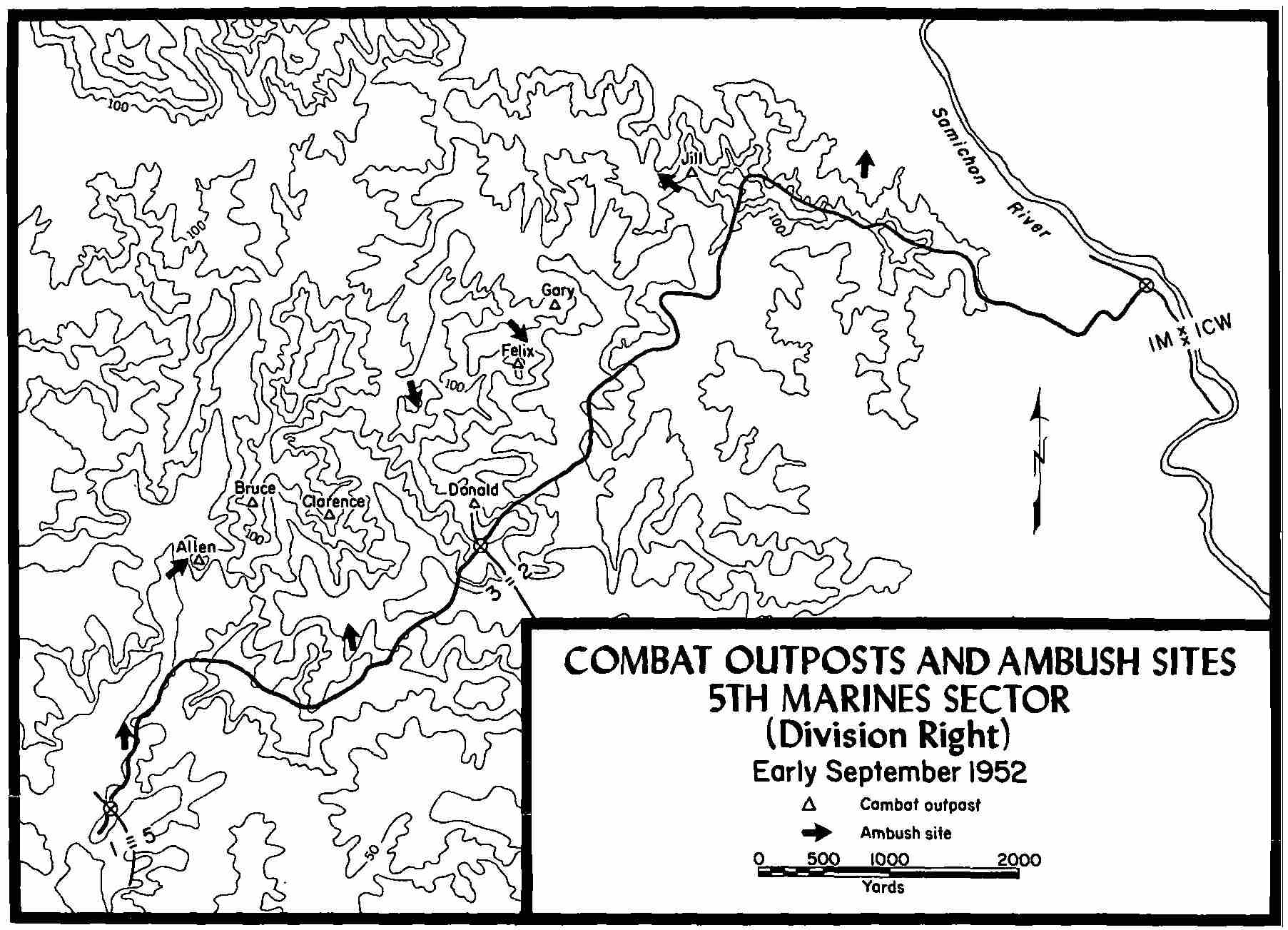 | 12 | Combat Outposts and Ambush Sites—5th Marines Sector (Division Right)—Early September 1952 | 151 |