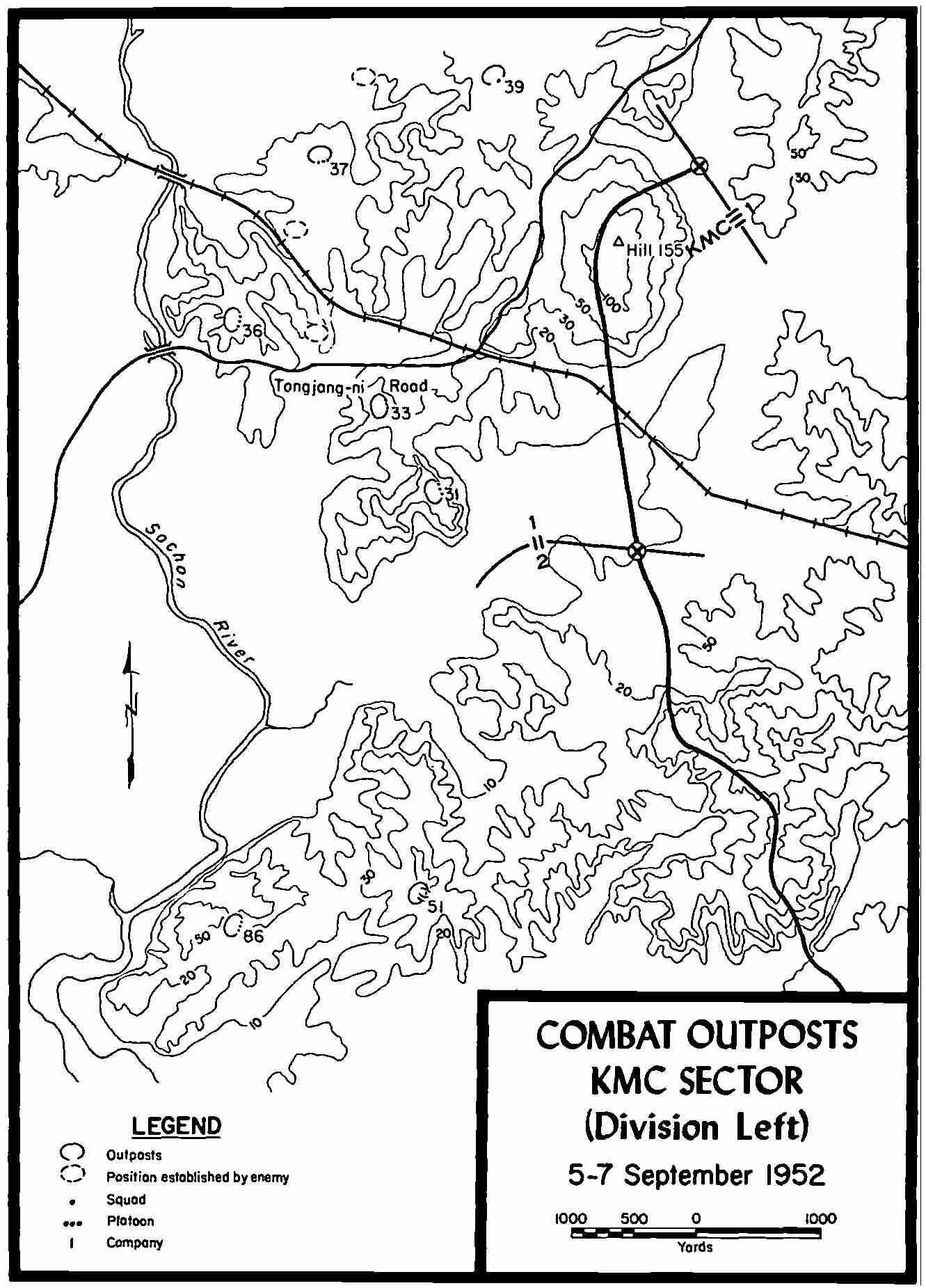 | From the Center Sector to the Right—Early September Outpost Clashes—Korean COPs Hit Again—More Enemy Assaults in Late September—Chinese Intensify Their Outpost Attacks—More PRESSURE, More CAS, More Accomplishments—Rockets, Resupply, and Radios | ||