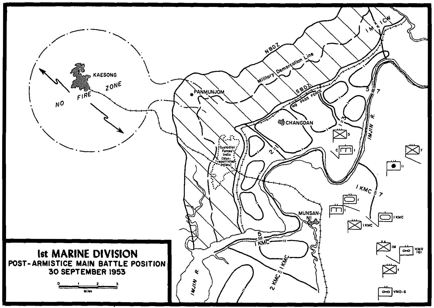 | The Postwar Transition—Control of the DMZ and the Military Police Company—Organization of New Defense Positions—Postwar Employment of Marine Units in FECOM | ||