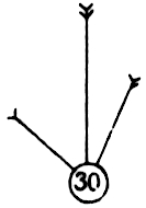 | Three lights of like color suspended from the corners of a triangle replace the cone at night. | ||