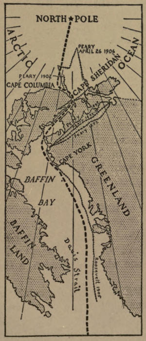 It is with pleasure I make grateful acknowledgment to the gentlemen who have accorded me their gracious permission to quote from their works, to Commander Robert E. Peary, to Major-General A. W. Greely, and Sir Allen Young, and to the following publishers and others who, by furnishing material or giving consent to use selected matter, or by kind assistance in other ways, have made my work possible: The American Publishing Company, Hartford, Conn., for selections from “Our Lost Explorers”; D. Appleton & Company for selections from Charles Lanman’s “Farthest North” and Payer’s “New Lands within the Arctic Circle”; The Century Company for selections from General Greely’s article on “The Northwest Passage”; to Clinedinst, Washington, D.C., for permission to reproduce the copyright portraits of Admirals Schley and Melville, General Greely, and Commander Peary; Constable & Company, and E. P. Dutton & Company, Ltd., London, for permission to reproduce the portrait of Amundsen in the latter’s work, “The Northwest Passage”; Doubleday, Page & Company for selections from Commander Peary’s “Nearest the Pole,” and for the portrait of Anthony Fiala and other illustrations from the latter’s work, “Fighting the Polar Ice”; The Encyclopædia Britannica Company for a selection from an article by Markham on “Polar Regions”; to J. Scott Keltie, Esq., editor of the Geographical Journal, for selections from that journal; Houghton; Mifflin Company for selections from “The Voyage of the Jeannette”[vii] and Melville’s “In the Lena Delta”; Dodd, Mead & Company for selections from the Duke of Abruzzi’s “On the Polar Star”; Benjamin B. Hampton, Esq., for permission to reproduce photographs of the Peary expedition of 1908 and Commander Peary’s map, and Mr. Hampton and the New York Times for permission to quote Commander Peary’s telegram announcing his discovery of the Pole; the editor of the Illustrated London News for permission to reproduce the portraits of Sir Edward Belcher, Captain Nares, and Commander Markham; Little, Brown & Company for selections from General Greely’s “Handbook of Polar Discoveries”; The London Agency for Ordnance Maps for selections from Sir Allen Young’s “Pandora Voyages”; Longmans, Green & Company for selections from Nansen’s “First Crossing of Greenland” and Sverdrup’s “New Land”; the editor of McClure’s Magazine for a selection from Mr. Baldwin’s article on “The Baldwin-Ziegler Arctic Expedition,” which appeared in that magazine in 1901-1902; Albert Operti, Esq., for permission to reproduce the portraits of W. H. Gilder, Lieutenant Schwatka, Colonel Brainard, Captain De Long, and Lieutenant Lockwood; C. Kegan Paul & Company for a selection from Markham’s “Great Frozen Sea”; G. P. Putnam’s Sons for a selection from Mr. Alger’s article on “Roald Amundsen,” which appeared in Putnam’s Monthly; the editor of the American Review of Reviews for a selection from Mr. McGrath’s article on “Polar Exploration,” which appeared in that magazine; Sampson, Low, Marston & Company, London, for a selection from “German Arctic Expeditions”; Charles Scribner’s Sons for a selection from Schwatka’s “Search,” Greely’s “Three Years’ Arctic Service,” and[viii] Schley’s “Rescue of Greely”; F. A. Stokes Company for permission to reproduce illustrations from Commander Peary’s work, “The North Pole,” and for the loan of photographs; and to the same company for selections from Andrée’s “Balloon Expedition” and Peary’s “Northward over the Great Ice.”