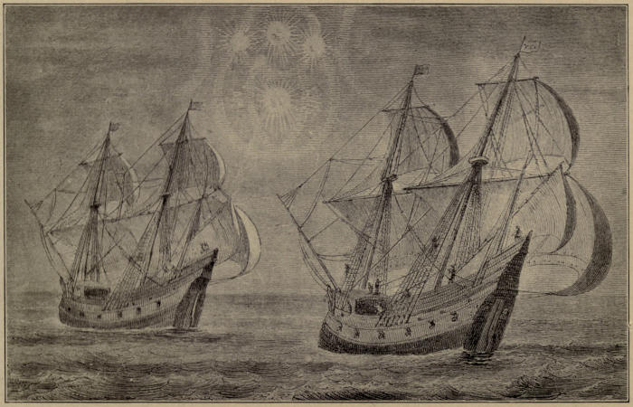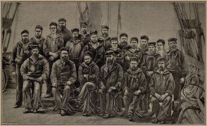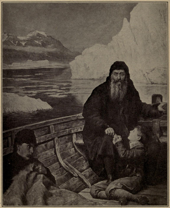 Hail! ye Iva Bardsen! Hail! ye early Norsemen and ye Danes! There stand the Cabots, John the father, Sebastian the bold son. There Sir Willoughby and Chancellor; and old Sir Humphrey Gilbert and a host of others. There Barentz, there Behring,—there Henry Hudson and old Baffin. Three hearty cheers for Von Wrangell, Ross and Parry and brave old Sir John Franklin! Crozier and his men line at attention and salute!