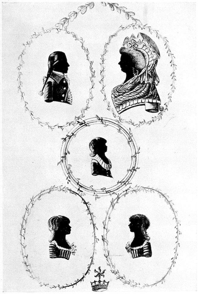 | JOHN FREDERICK SACKVILLE, 3RD EARL OF DORSET; ARABELLA DIANA, 3RD DUCHESS OF DORSET; THE EARL OF MIDDLESEX; LADY ELIZABETH SACKVILLE, and LADY MARY SACKVILLE. From a silhouette by A. T. TERSTAN 1797. The property of LADY SACKVILLE | 196 |