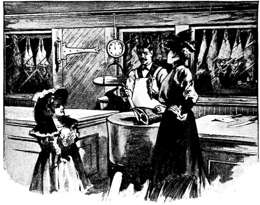 Here are radishes and lettuce, for salad; but if we buy these, we must be sure that they are well washed in boiled water before we eat them. There are little creatures, so small that they cannot be seen without a strong microscope, that live among the lettuce and other green leaves. These tiny creatures are the cause of the worst form of dysentery. All sorts of vegetables which we eat raw should be washed clean, and it is of no use to wash them in unboiled water, 33as the amœba (which is the little creature’s name) may be in that, too.