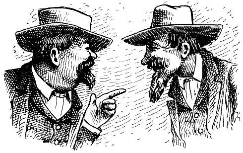 A lovesick lad met his sweetheart down in the shady lane and poured out his soul to her under the locust bloom. I saw him push his boat from the shore and dip his oars in the clear heaven of the crystal waters. She was his only companion. And as the painted keel darted away like a bird beneath the bending boughs and went skimming round the bend of the river I heard their voices blending up among the cliffs and shadows singing a sweet love song. To him, she was a full blow’n rose of beauty; to her, he was a daisy. To him her ribbons were streaks of light; to her his fuzzy upper lip was a poem. They floated and fished and fished and floated away the golden hours; and while they fished and floated, he wooed her—he wooed and he wooed and he wooed—until, at length, he won her; and, as they floated homeward in the evening, dreaming of wedding bells and orange blossoms,