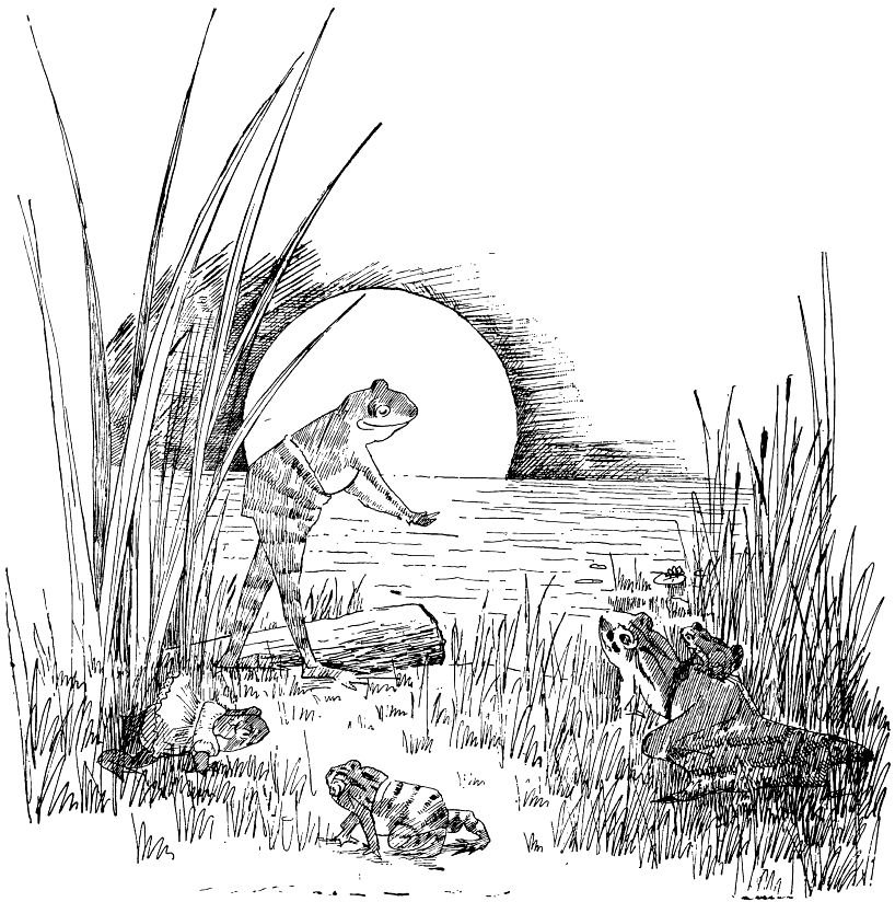 I once sat on the grassy brink of a southern stream in the gathering twilight of evening and listened to a concert of Nature’s musicians who sang as God hath taught them to sing. The katydid led off with a trombone solo; the cricket chimed in with his E flat cornet; the bumble-bee played on his violincello, and the jaybird laughed with his piccolo. The music rose to grandeur with the deep bass horn of the big black beetle; the mocking-bird’s flute brought me to tears of rapture, and the screech-owl’s fife made me want to fight; the tree-frog blew his alto horn; the jar-fly clashed his tinkling cymbals; the woodpecker rattled his kettledrum and the locust jingled his tambourine. The music rolled along like a sparkling river in sweet accompaniment with the oriole’s leading violin; but it suddenly hushed when I heard a ripple of laughter among the hollyhocks before the door of a happy country home. I saw a youth standing there in the shadows holding his sweetheart’s hand in his. There were a few whispers, tender and low—the lassie vanished in the cottage—the lad vanished over the hill, and as he vanished he swung his hat in the shadows and sang back to her his happy love song: